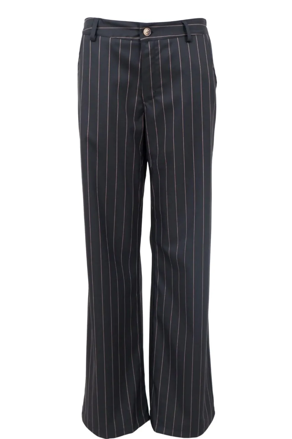 Sorte bukser fra Black Colour med lodrette pinstriber. Bukserne har en løs pasform og en almindelig taljehøjde.
