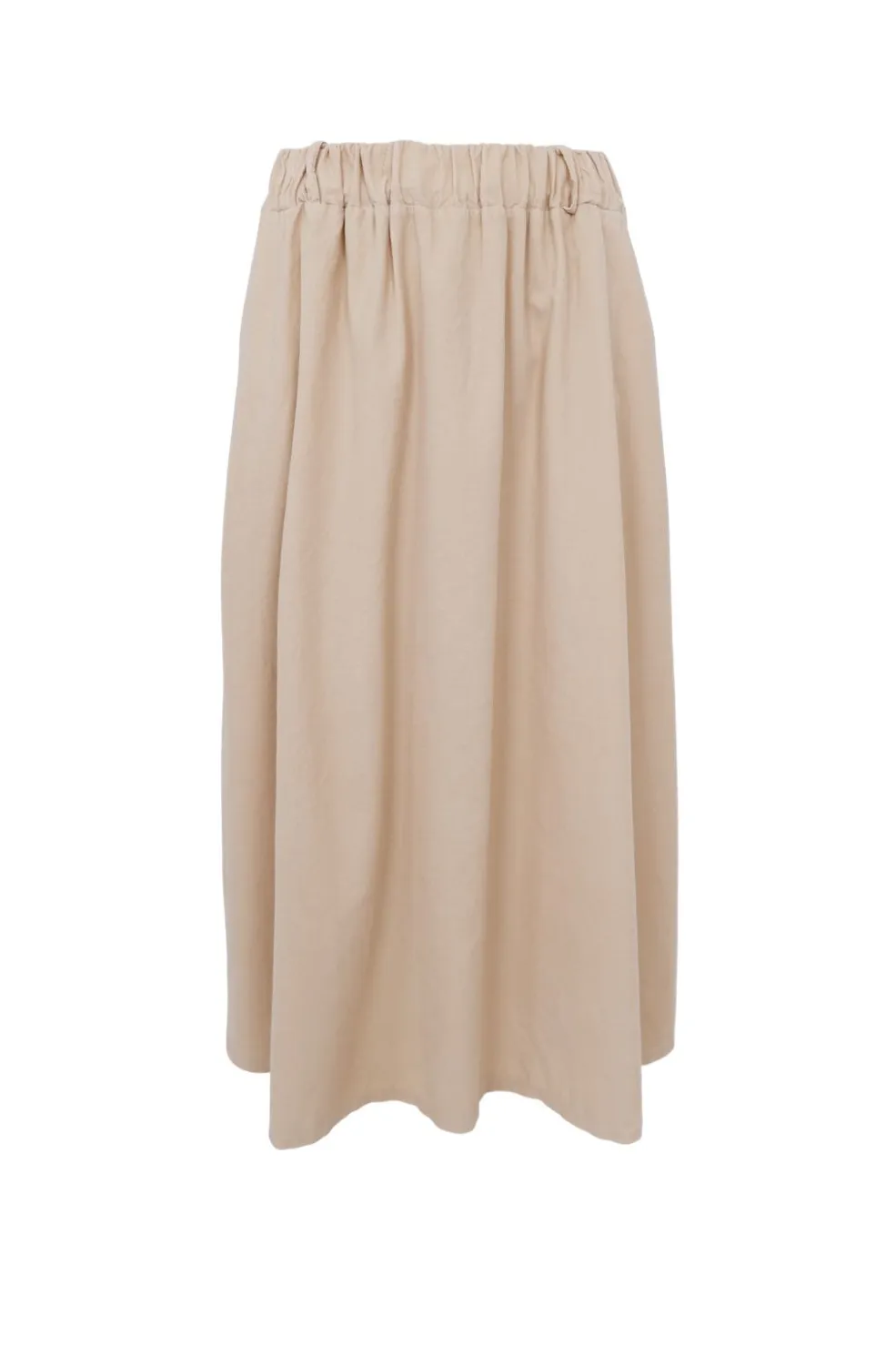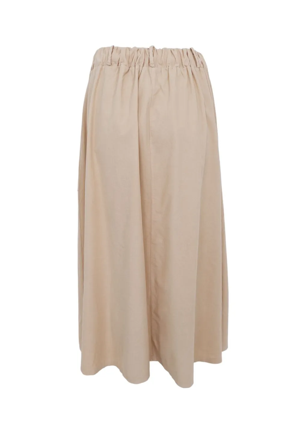 Fløjlsnederdel fra Black Colour i en lys beige farve. Nederdelen er lavet af 100 % bomuld og har en elastisk talje med flæsedetaljer.