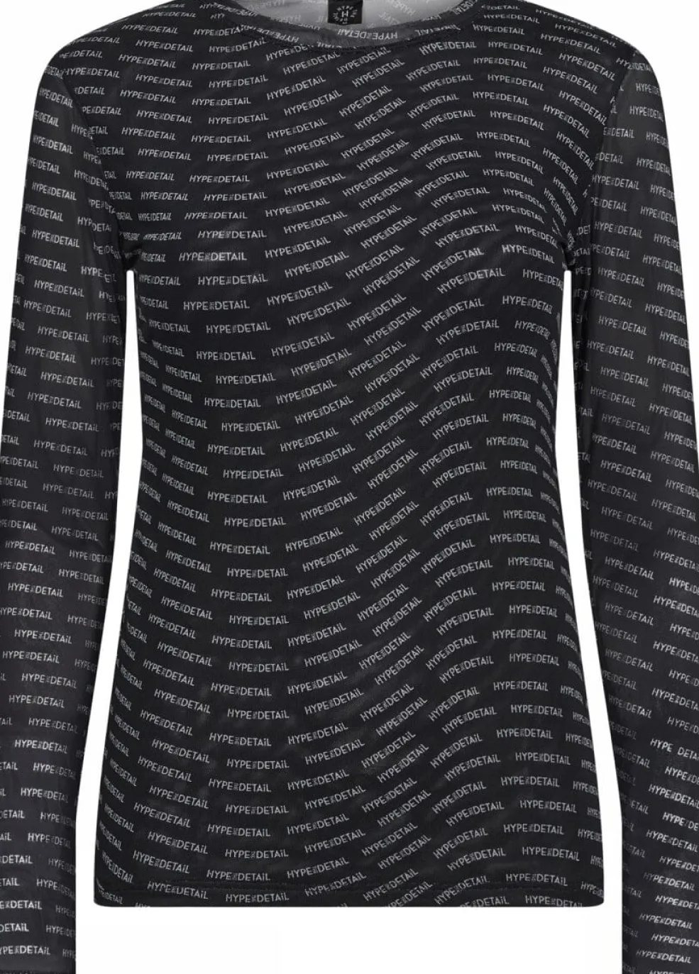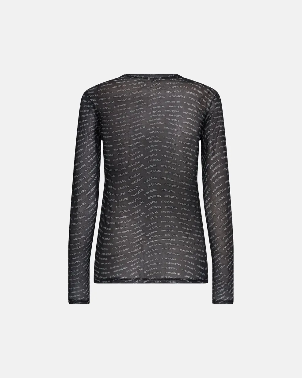 Sort bluse fra Hype The Detail med et gennemgående print af teksten HYPE/DETAIL. Blusen har lange ærmer og en rund halsudskæring, der giver et rent og enkelt udtryk.