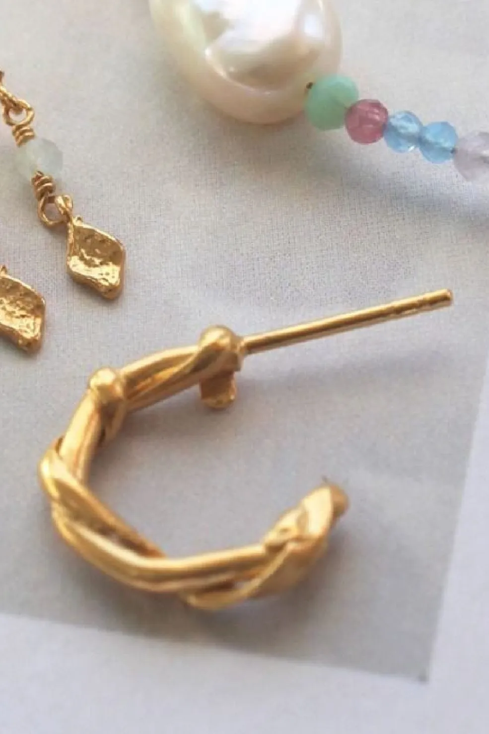 Snoet creol-ørering fra Stine A med et karakteristisk drejet design. Øreringen er fremstillet i forgyldt sterlingsølv med en varm guldtone og har en solid konstruktion.