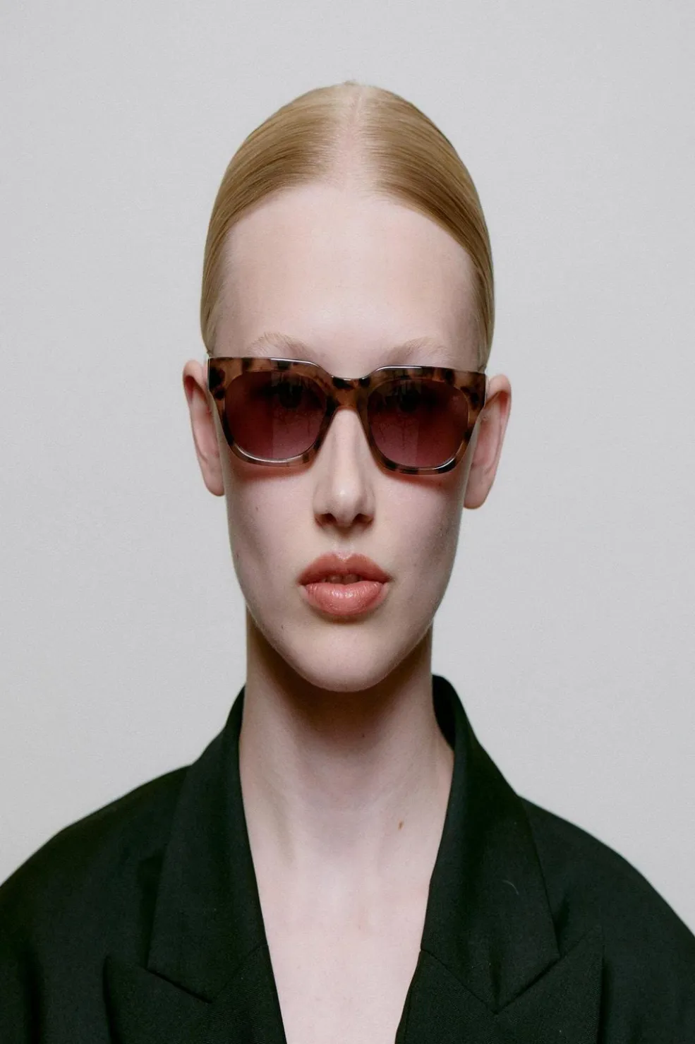 Solbriller fra A. Kjærbede i Tritan Renew med rektangulær form og bløde kanter. Stellet har en brun tortoiseshell-farve med gradientlinser, der er mørkere foroven og lysere forneden.