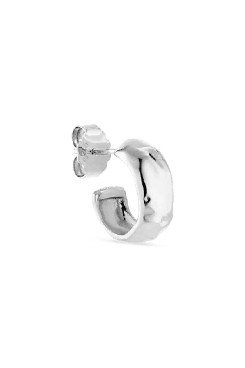 Sølvfarvet ørering fra Jane Kønig med et forslået hjerte-design. Øreringen har en poleret overflade med buede former og er fremstillet i Danmark med fokus på håndværk.