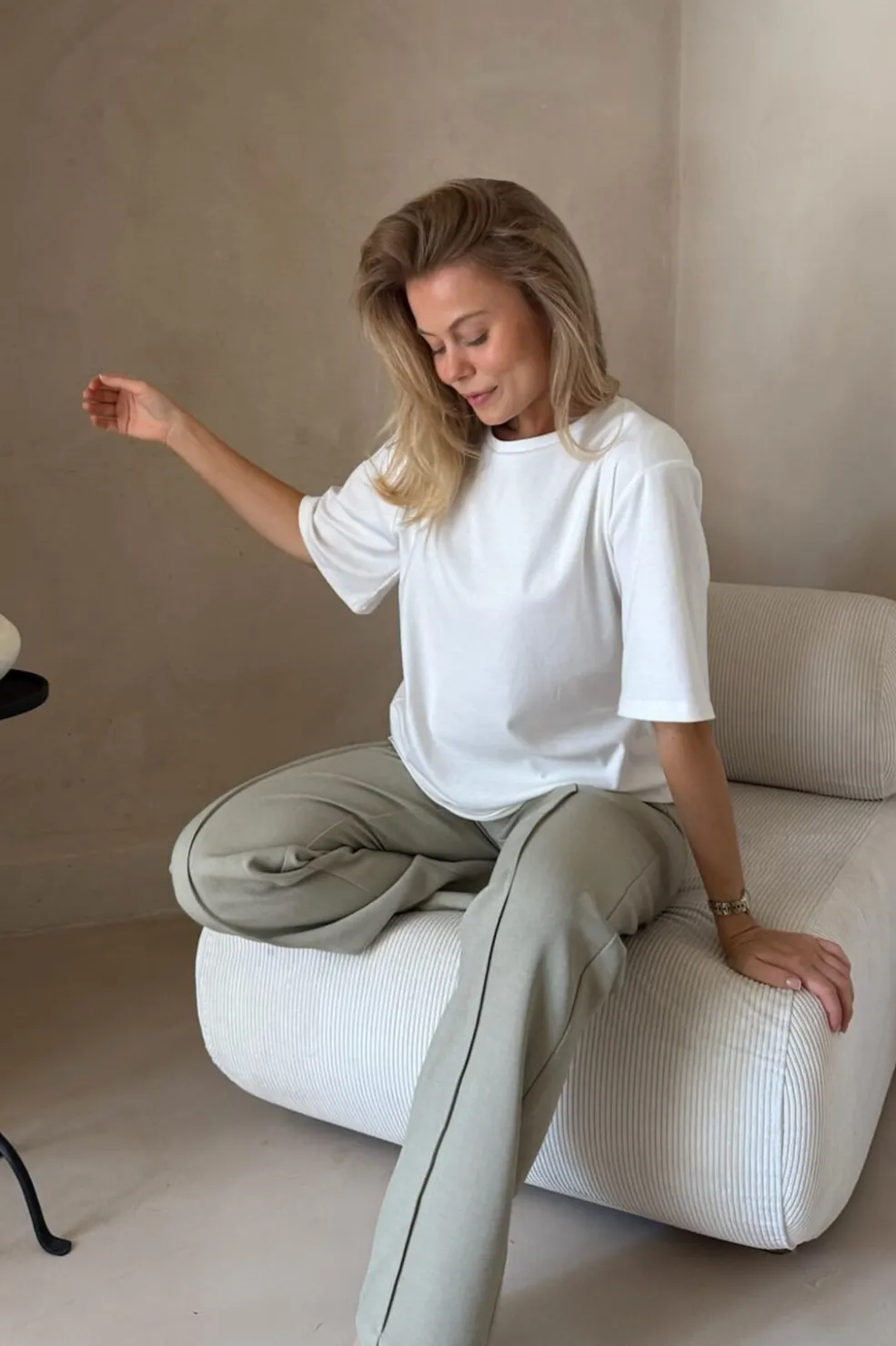 Hvid t-shirt fra BYIC med løs pasform og rund halsudskæring. T-shirten har korte ærmer og en afslappet silhuet, der passer til både motion og afslapning.
