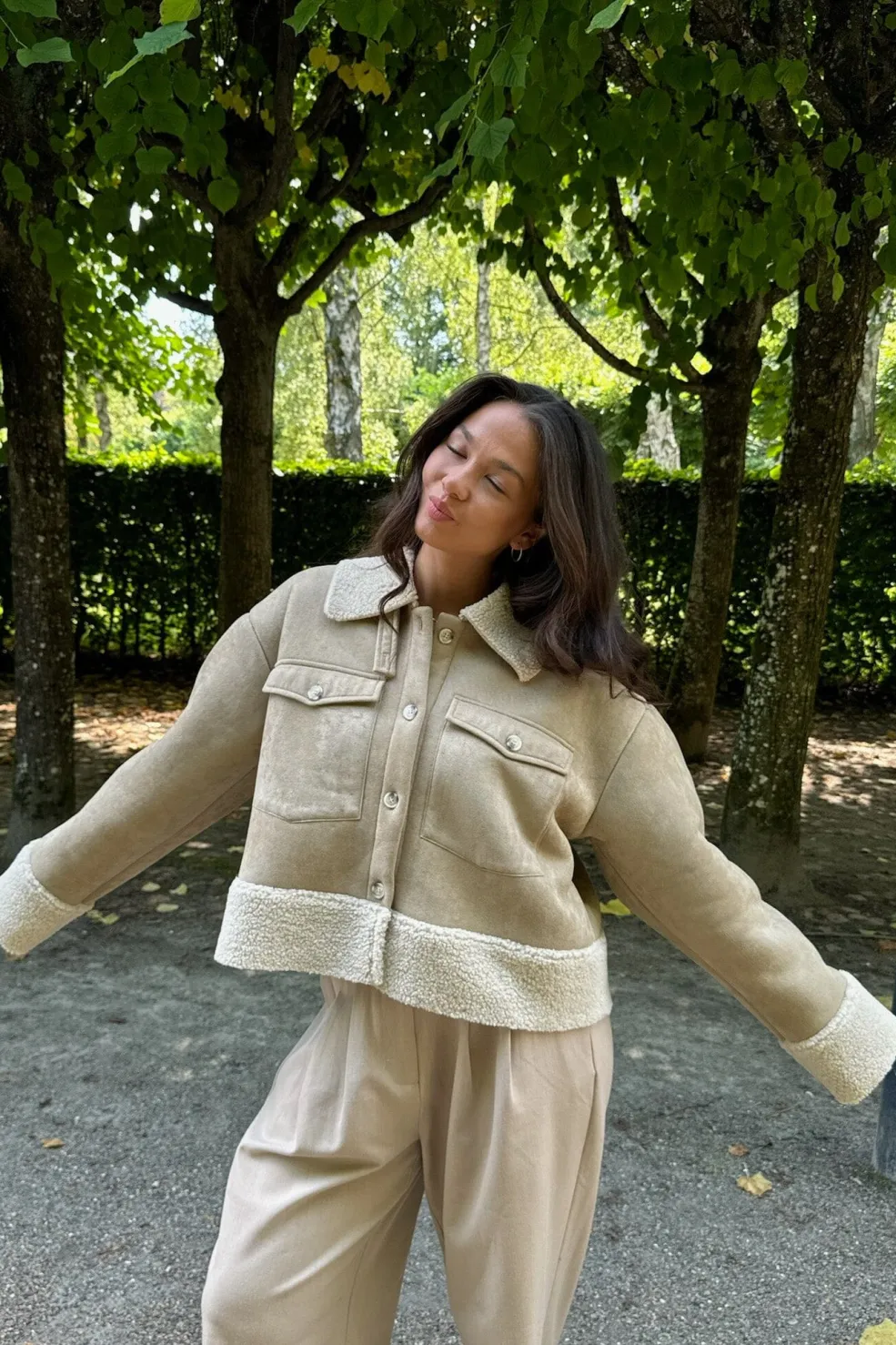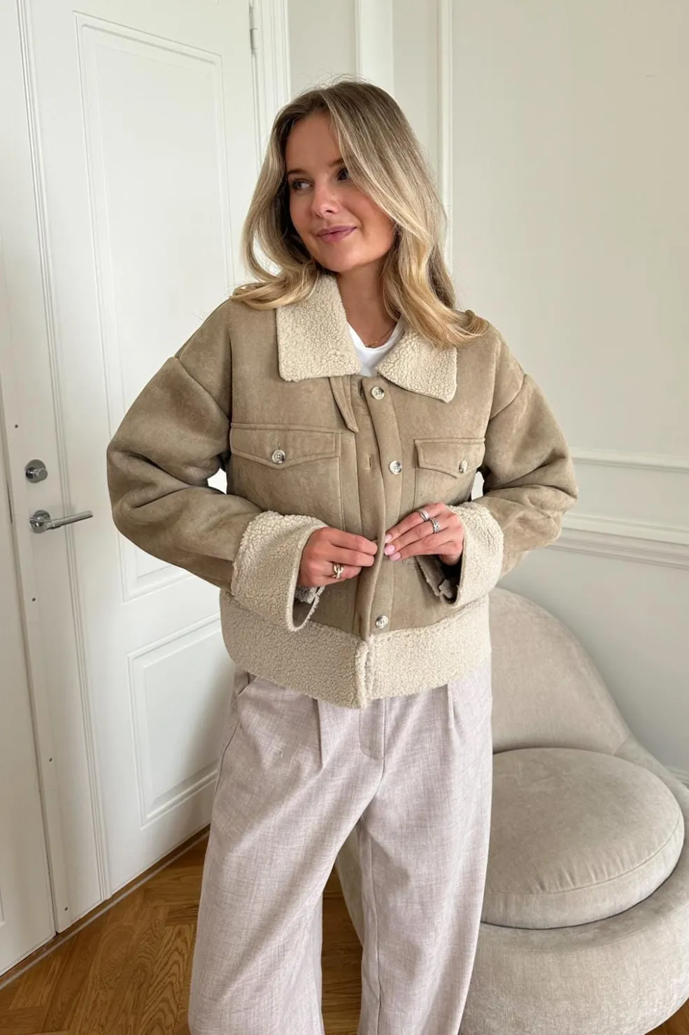 Sort og hvid quiltet jakke i en oversized pasform med blomsterprint i forskellige farver, to store lommer og knapper ned langs fronten. Passer til størrelsen.