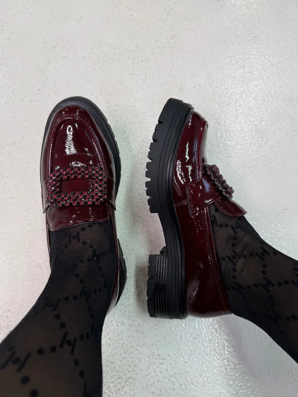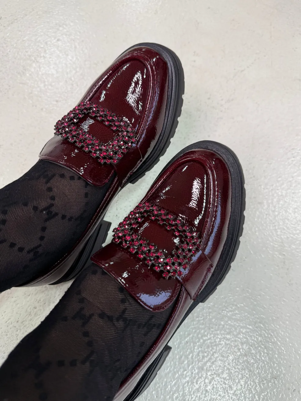 Loafers fra Bloom i en klar rød farve. Skoen har en firkantet tåform og en lav hæl.