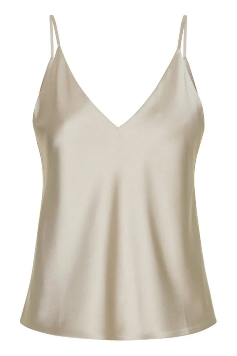 Camisole-top fra Karmamia i en lys cremefarvet nuance. Den har v-hals og tynde stropper, der giver et let udtryk.