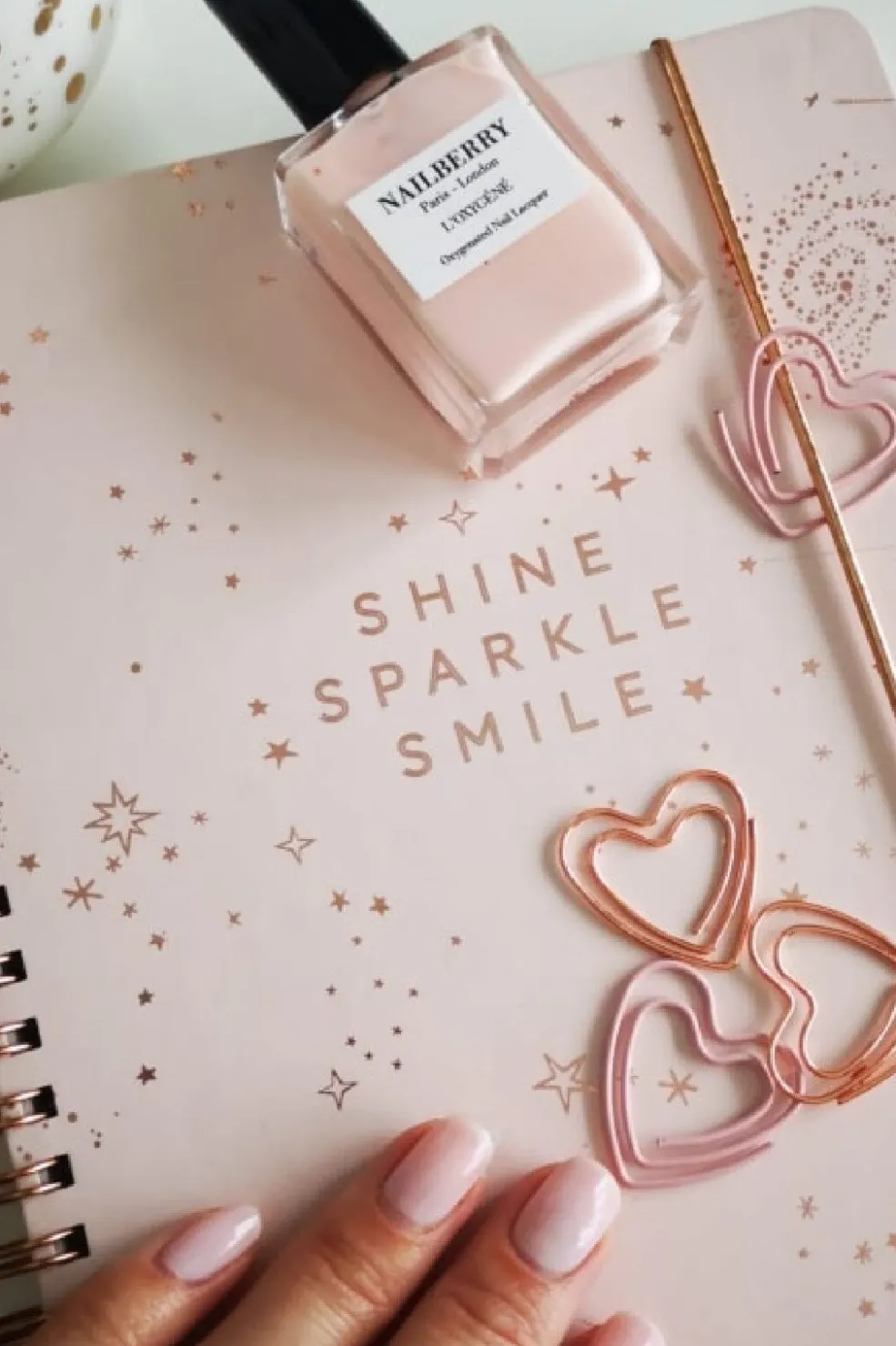 Pink neglelak fra Nailberry med L’Oxygéné-teknologi. Lakken har en holdbar finish med glans og lader neglene ånde gennem formlen.