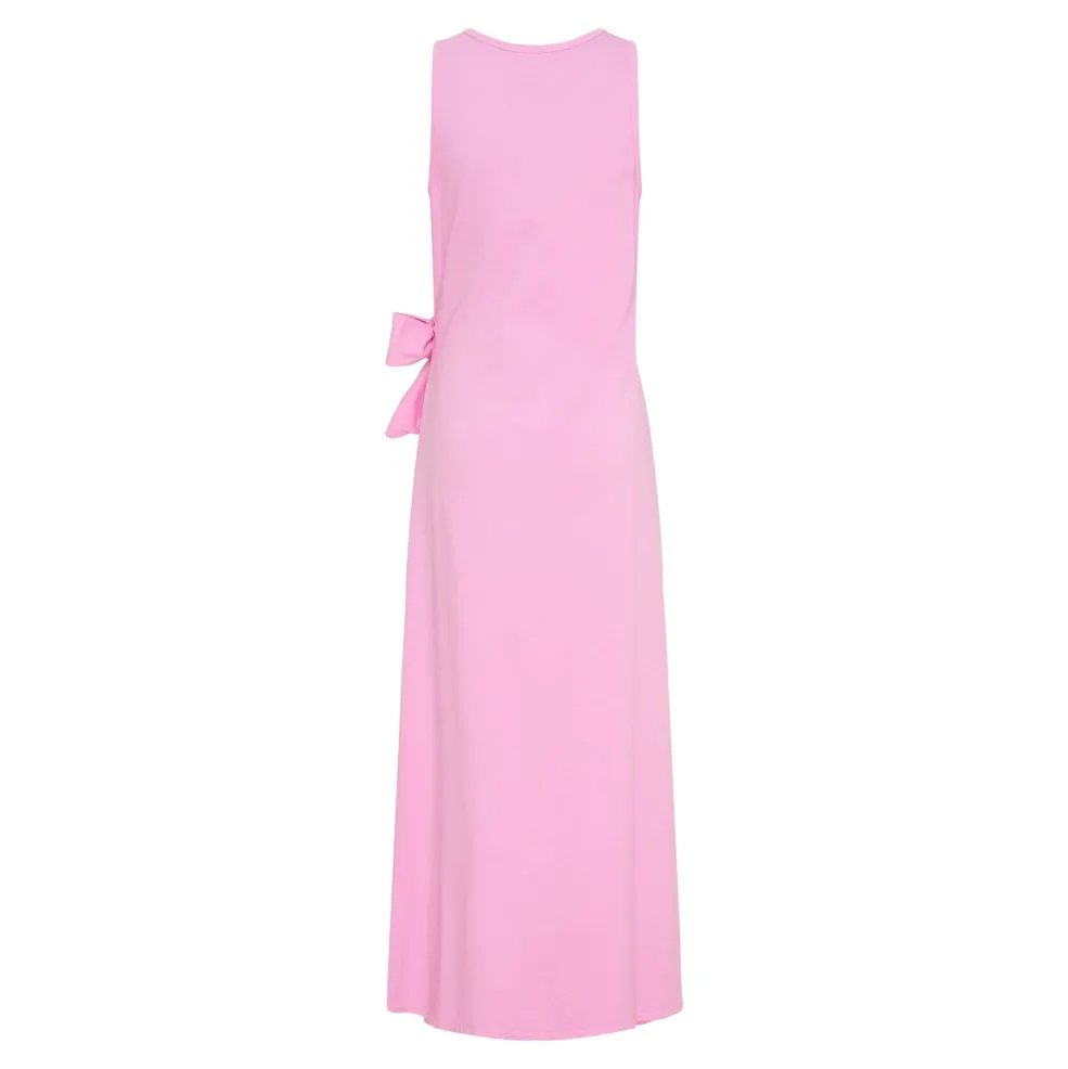 Lang kjole fra Marta Du Chateau i rosa. Kjolen har en løs pasform med en knudedetalje i siden og brede stropper med rund halsudskæring.