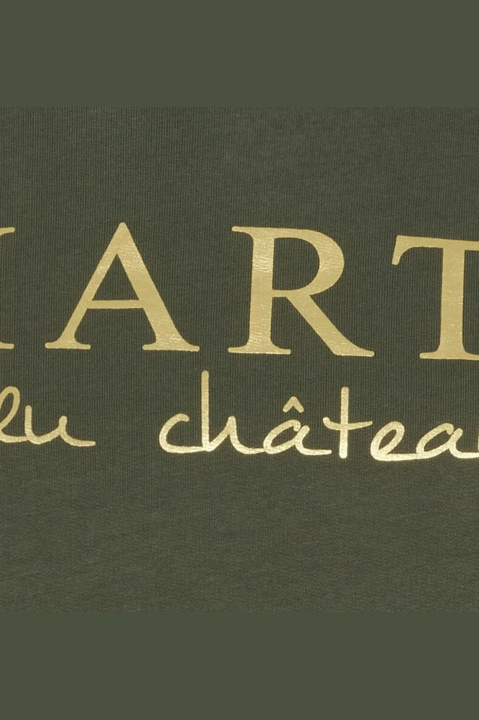 Militærgrøn sweatshirt fra Marta Du Chateau med guldfarvet logo på forsiden. Den har en rund halsudskæring og lange ærmer, hvilket giver et klassisk udtryk.