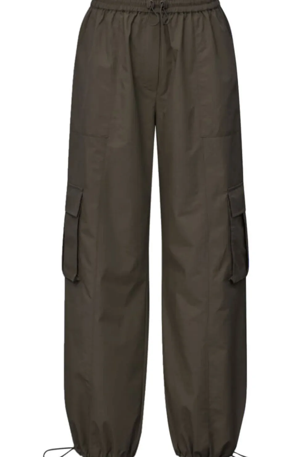 Brune cargo-bukser fra A-View med høj talje og regular fit. Bukserne har praktiske cargo-lommer og snøredetaljer, der kombinerer funktion med et afslappet look.
