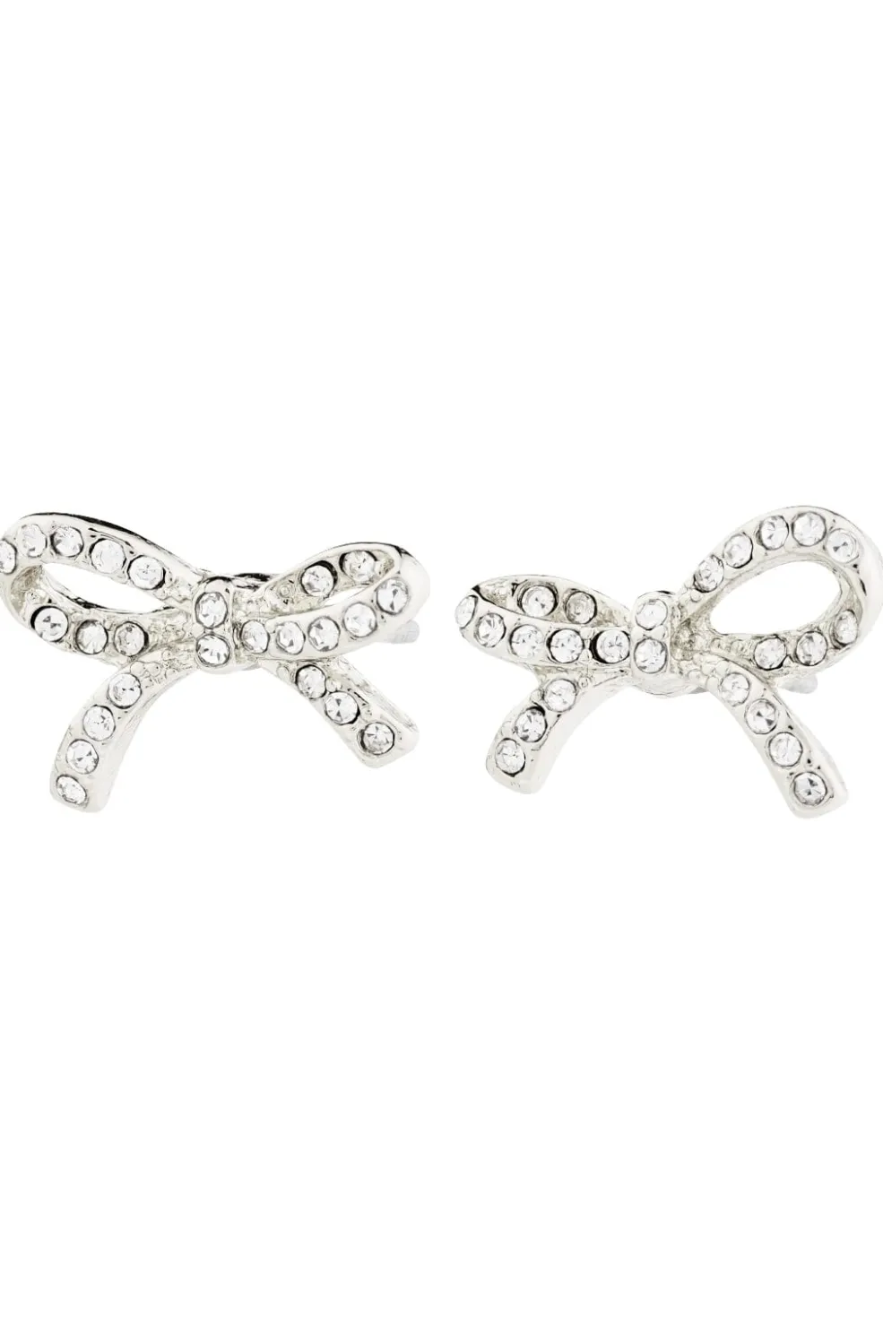 Sølvbelagte øreringe fra Pilgrim med sløjfeform og klare krystaller. Øreringene har en sikker og behagelig pasform med et let design.