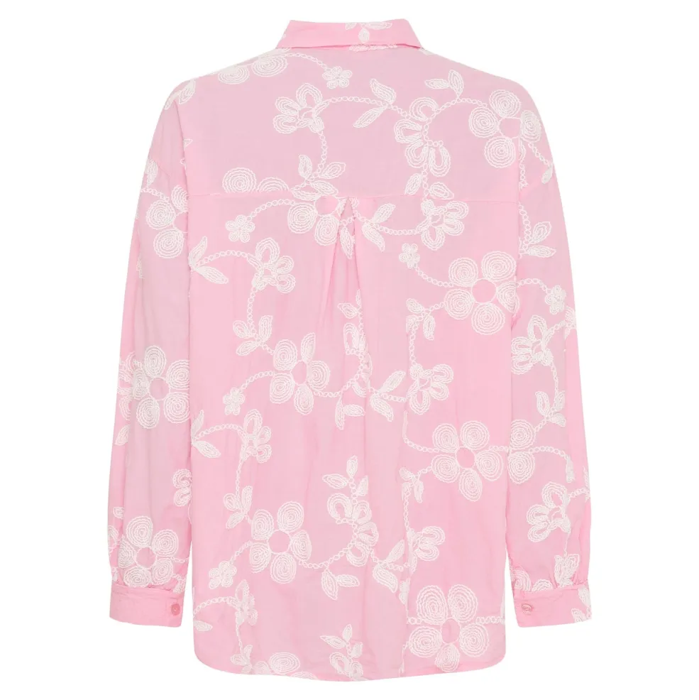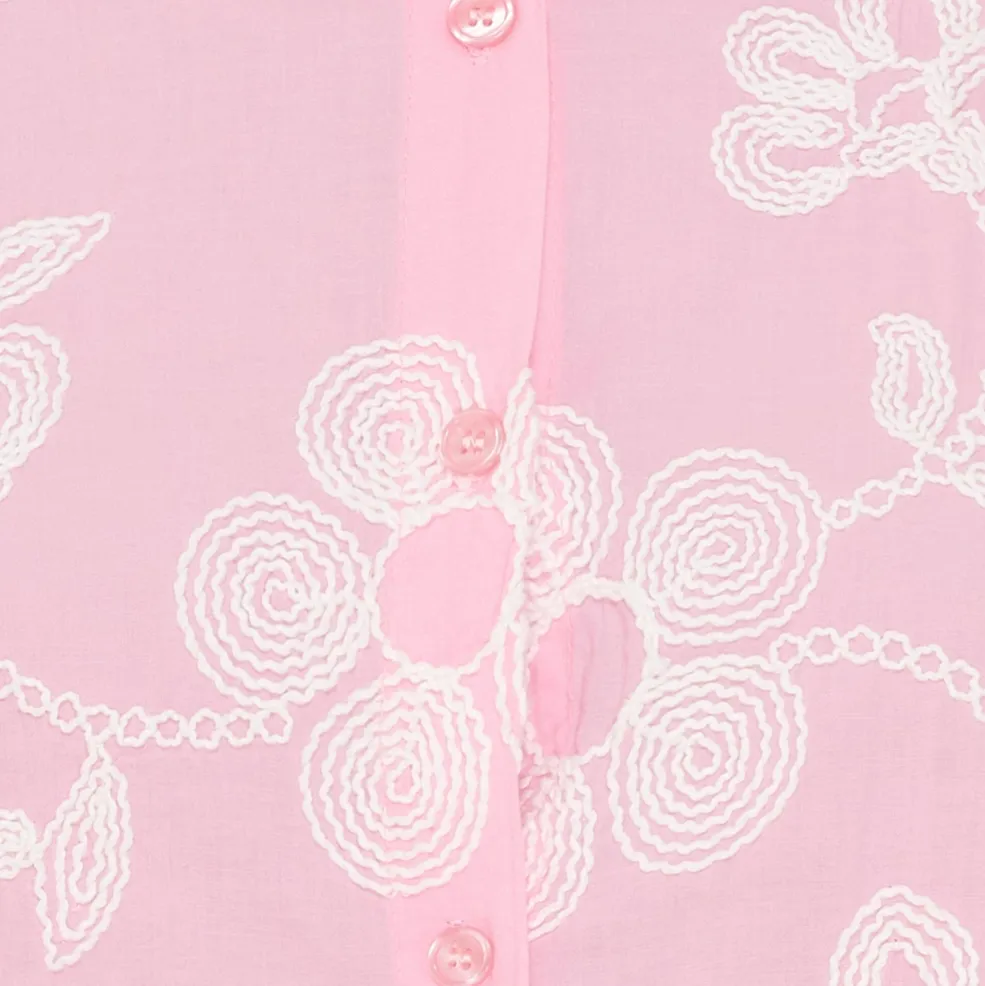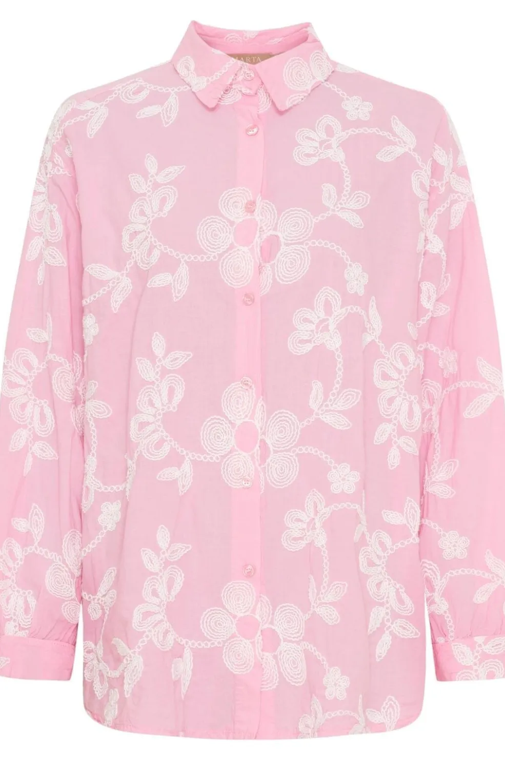 Lyserød skjorte fra Marta Du Chateau med hvidt blomsterbroderi. Skjorten har en løs pasform med klassisk krave og knaplukning foran.