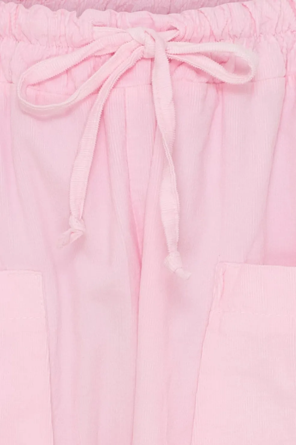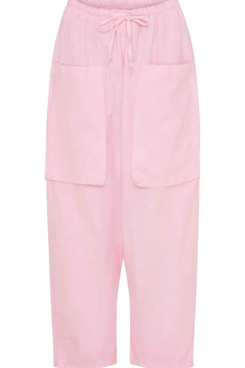 Lyserøde bukser fra Marta Du Chateau i bomuld med knælængde. Bukserne har store lommer foran og en enkelt lomme bagpå samt en elastisk talje med bindebånd.