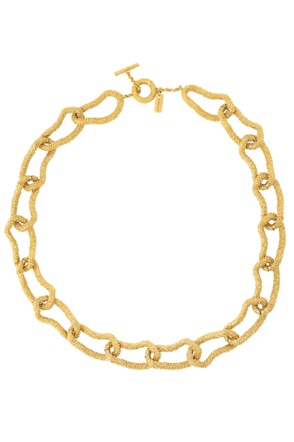 Forgyldt halskæde fra House of Vincent med store kædeled. Overfladen har en ru struktur, der giver dybde til den gyldne farve.