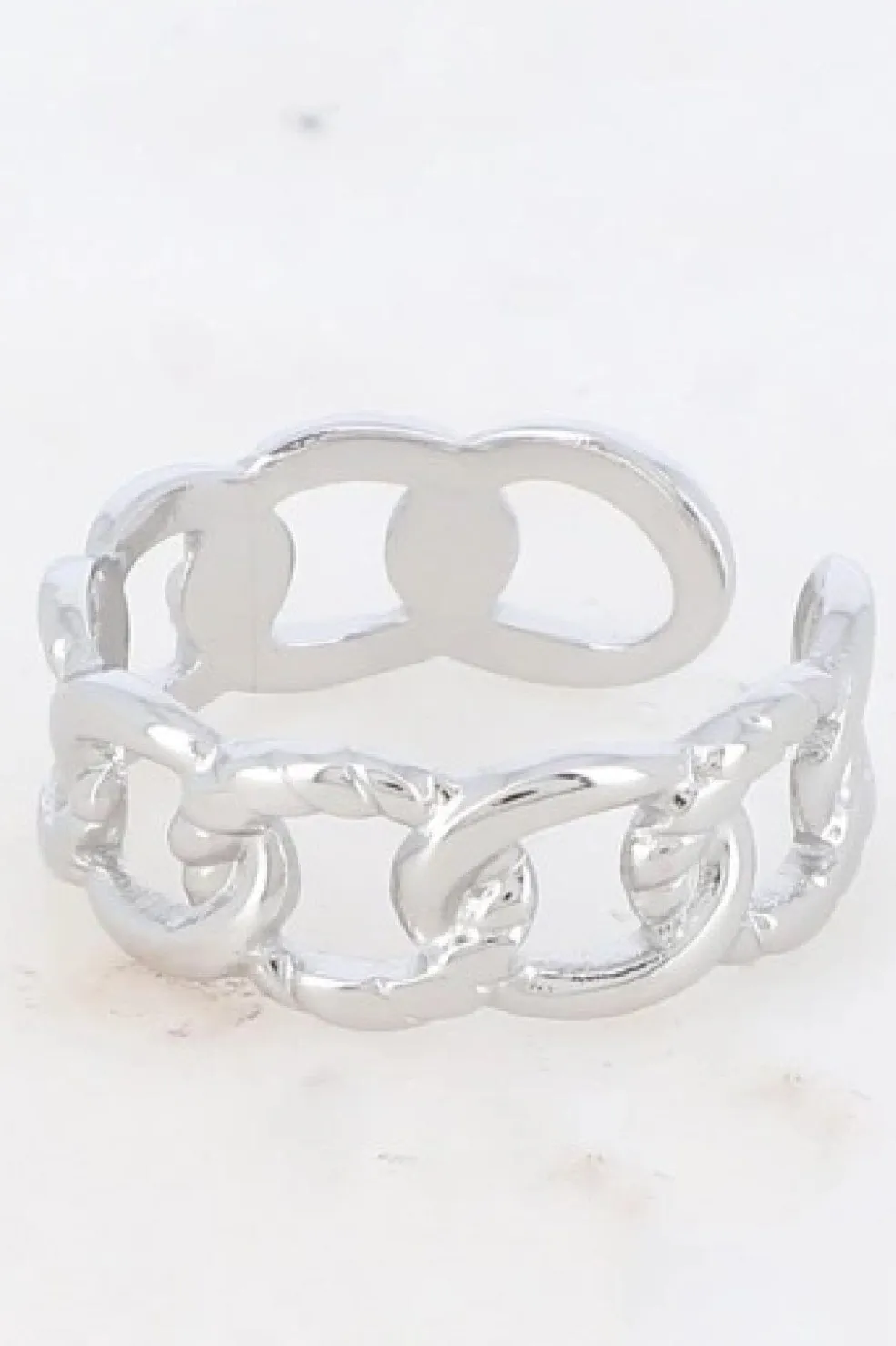 Forsølvet ring fra Mellow Moon med kædedesign. Ringen har en åben form med både glatte og snoede led.