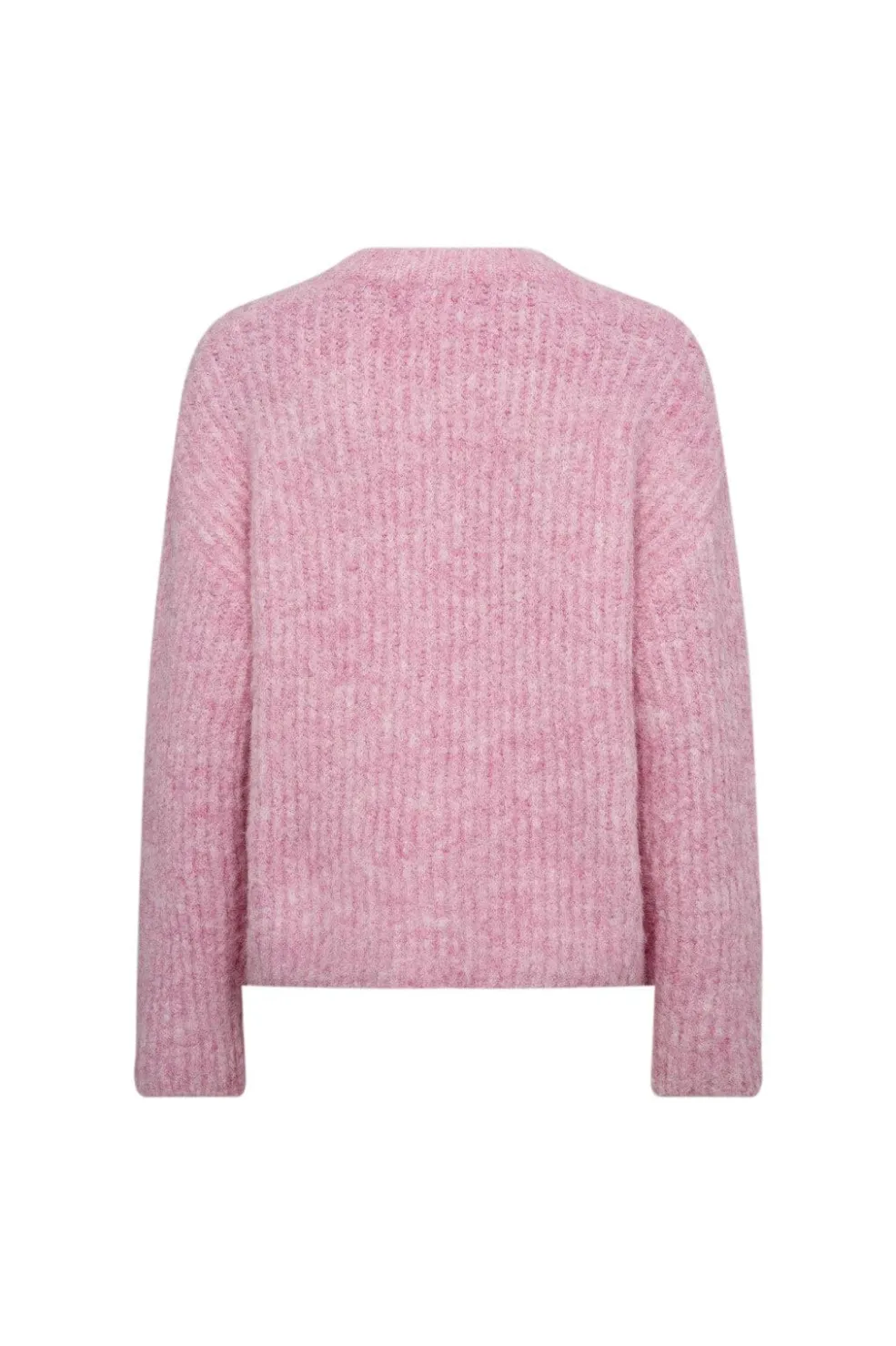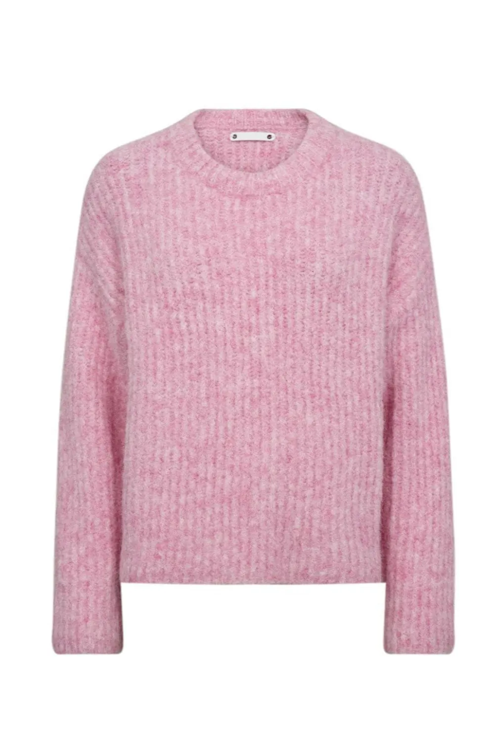 Lyserød striktrøje fra Co’Couture med rund halsudskæring. Trøjen har en løs pasform og en ribbet struktur, der giver den et blødt udtryk.