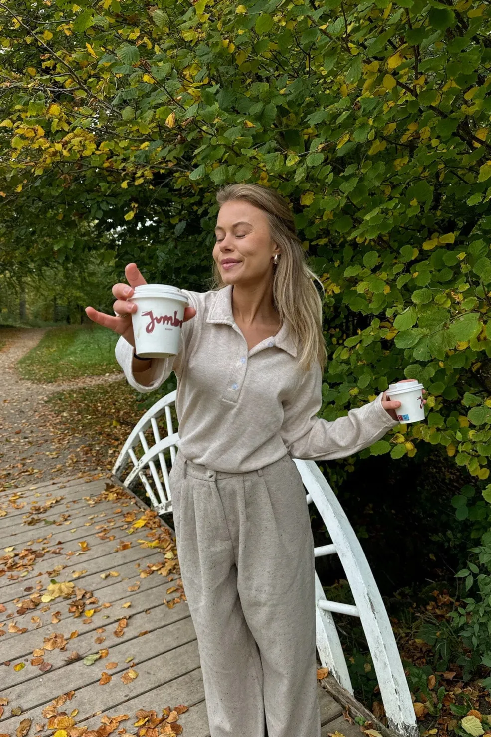 Beige bukser fra BYIC i et bredt design med løs pasform. Bukserne har to forlommer og to falske baglommer og er lavet af blødt materiale i beige melange.