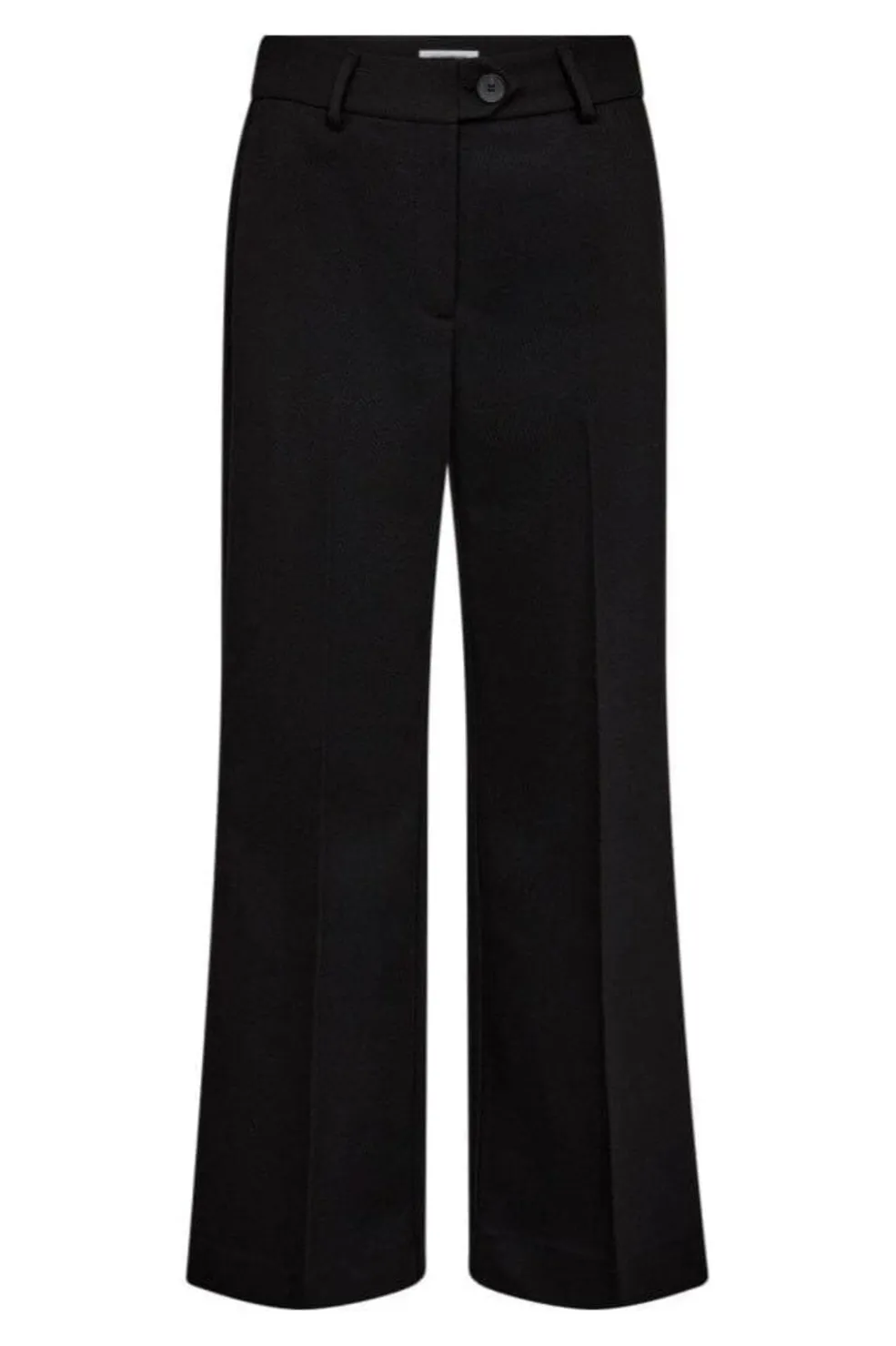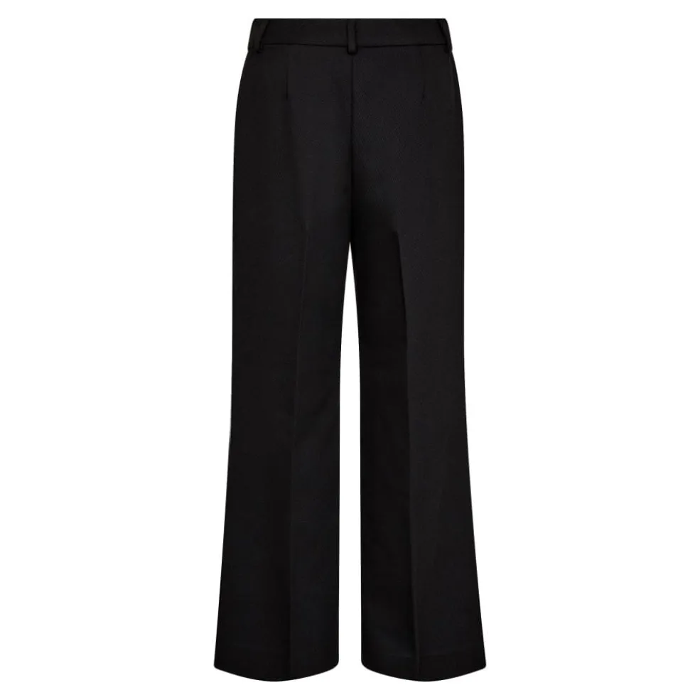 Sorte viddebukser fra Co’Couture med en løs pasform. Bukserne har knap- og lynlåslukning foran samt bæltestropper omkring taljen.