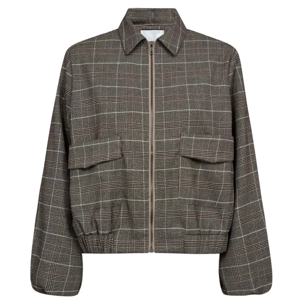 Ternet jakke fra Co´Couture i en varm brun nuance. Jakken har ballonærmer med flæser og en løs pasform.