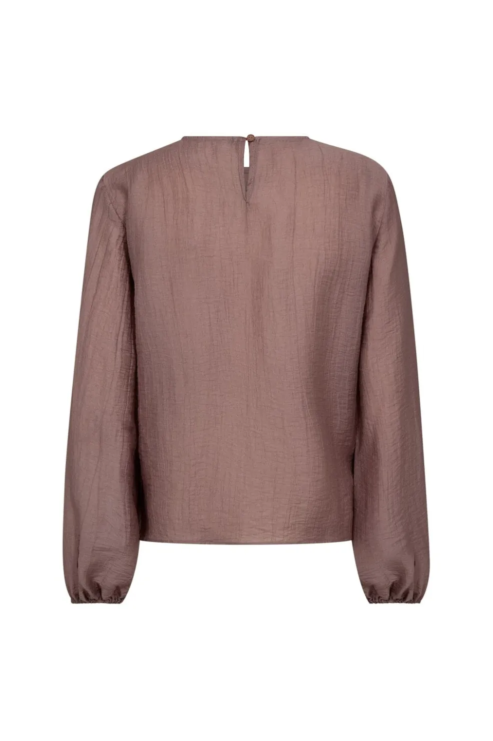 Bluse fra Co´Couture i gammelrosa med et draperet design på forsiden. Blusen har lange ærmer med elastik ved håndleddene og en keyhole-åbning bagpå.