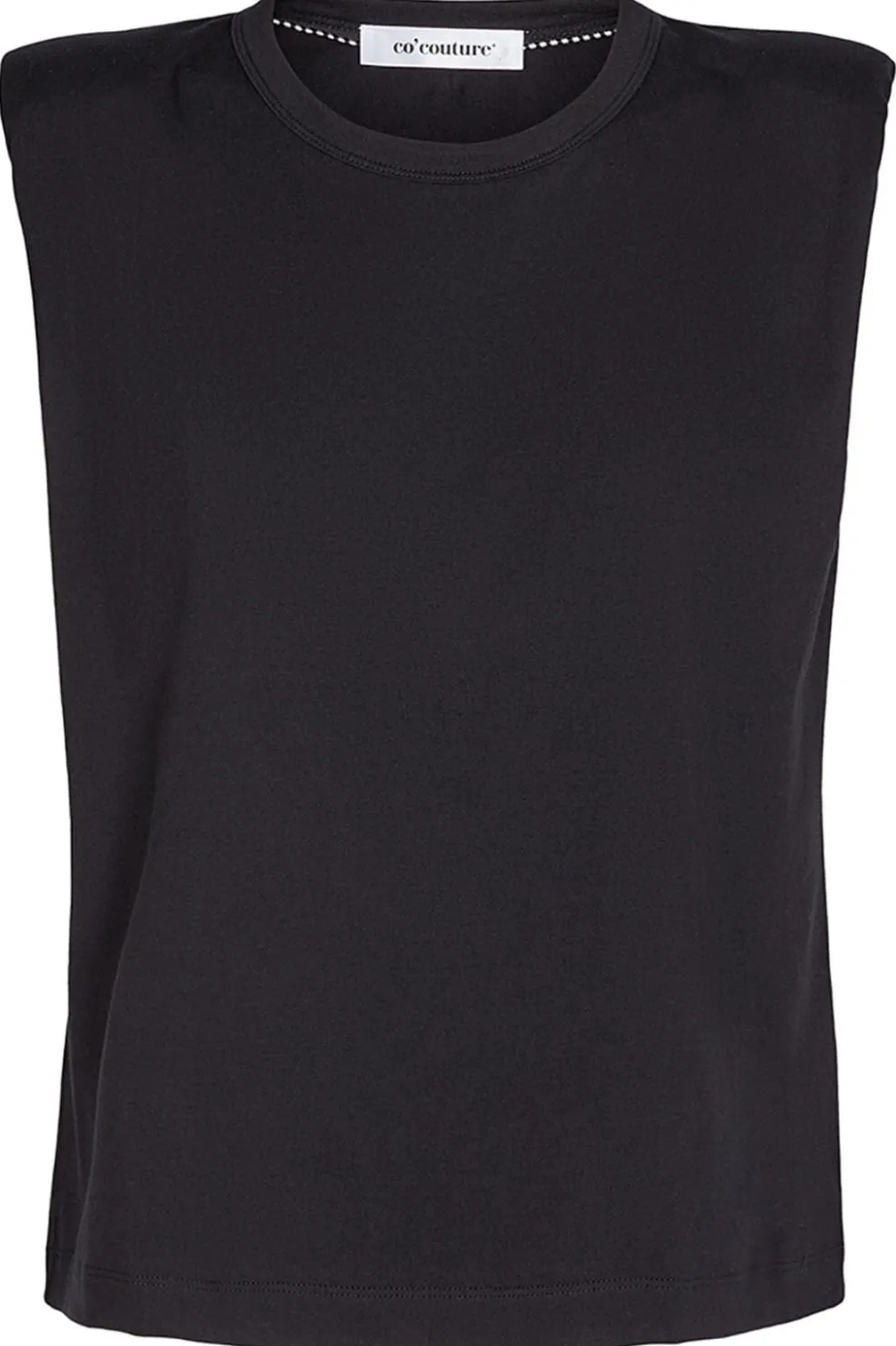 Sort ærmeløs t-shirt fra Co’couture i økologisk bomuld. T-shirten har en rund halsudskæring og et enkelt design, der er nemt at style til forskellige anledninger.