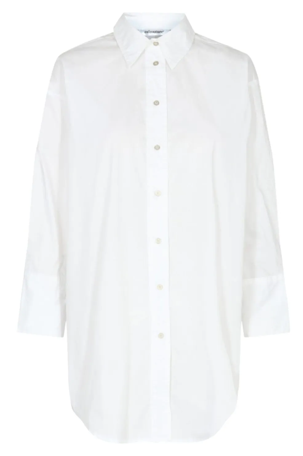 Hvid skjorte fra Co’couture med oversize pasform og klassisk skjortekrave. Den lange skjorte har knapper hele vejen ned og er lavet af en blanding af bomuld og polyester.