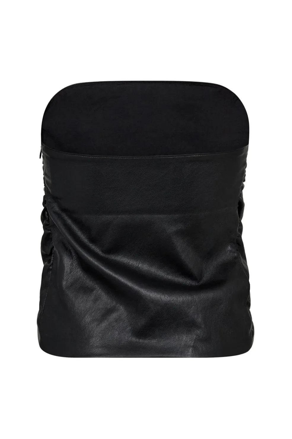 Sort corsage fra Co´Couture lavet af kunstlæder. Denne corsage har et off-shoulder-design og en tætsiddende pasform.