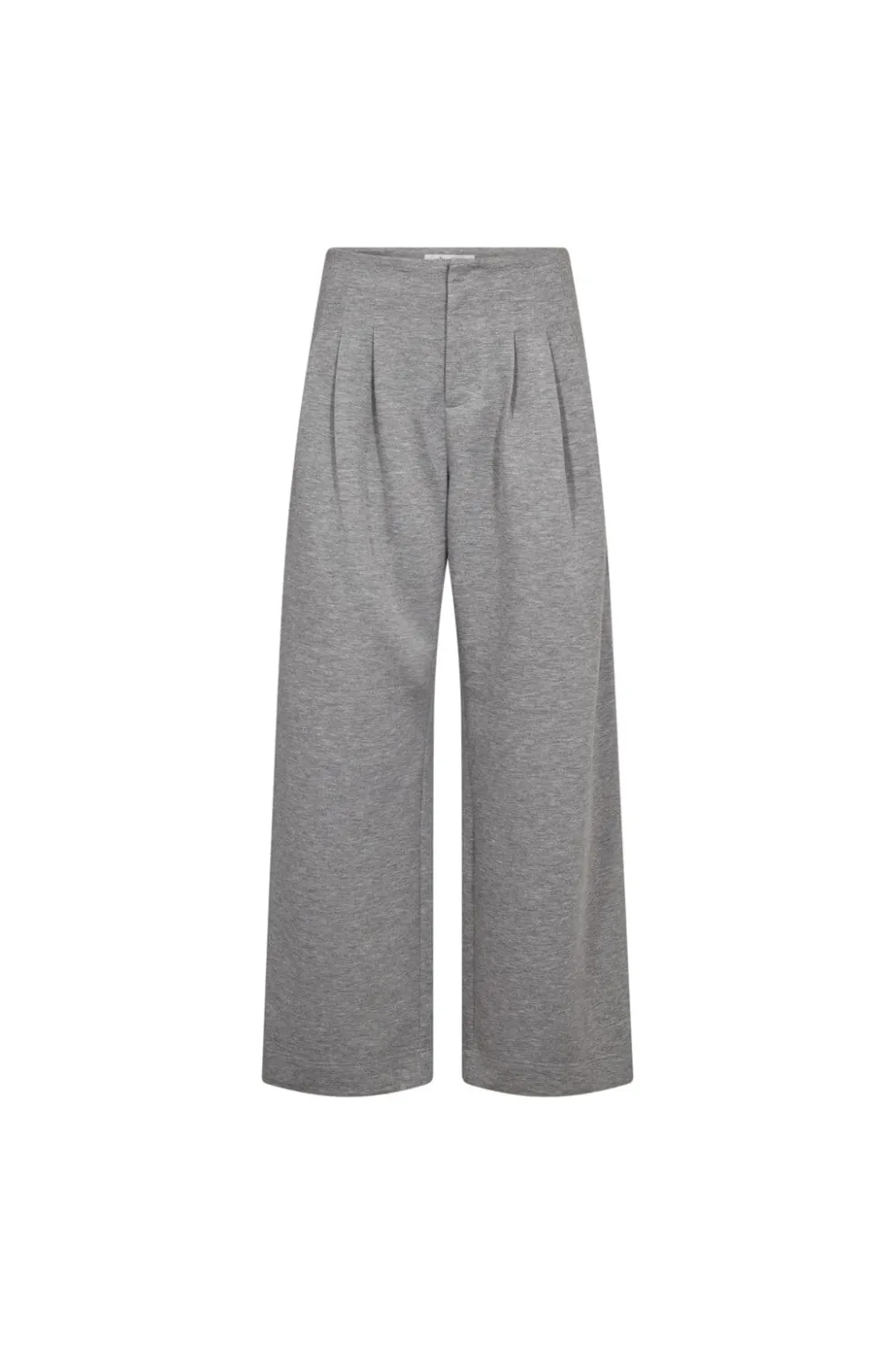 Sweatpants fra Co´Couture i en grå meleret farve. Bukserne har en løs pasform med synlige læg foran og sidelommer.