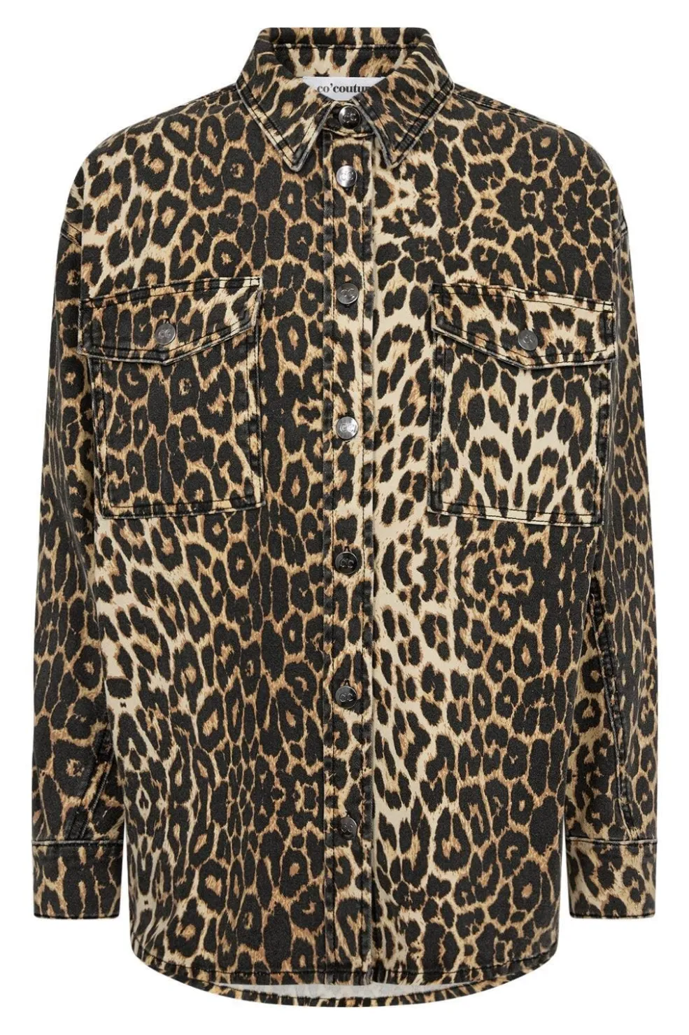 Denimskjorte fra Co´couture med leopardmønster i beige og sorte nuancer. Skjorten har en løs pasform med klassisk skjortekrave og brystlommer.