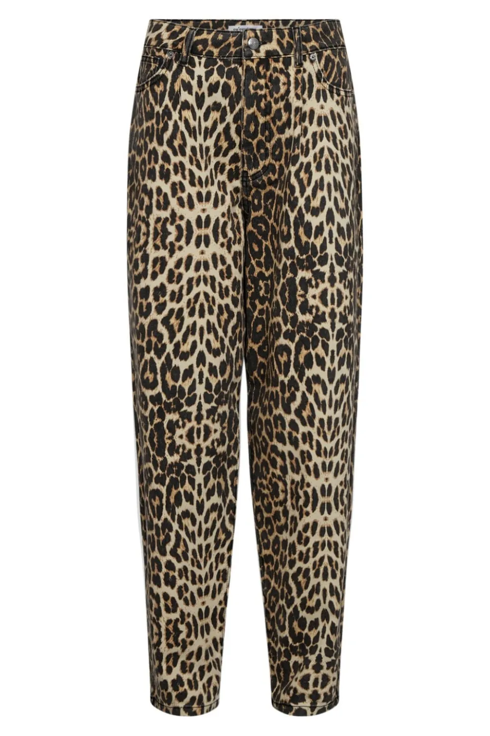 Plisserede bukser fra Co’Couture i khaki med leopardmønster. Bukserne har en normal pasform og går til midt på læggen. De er lavet af bomuld med stretch.