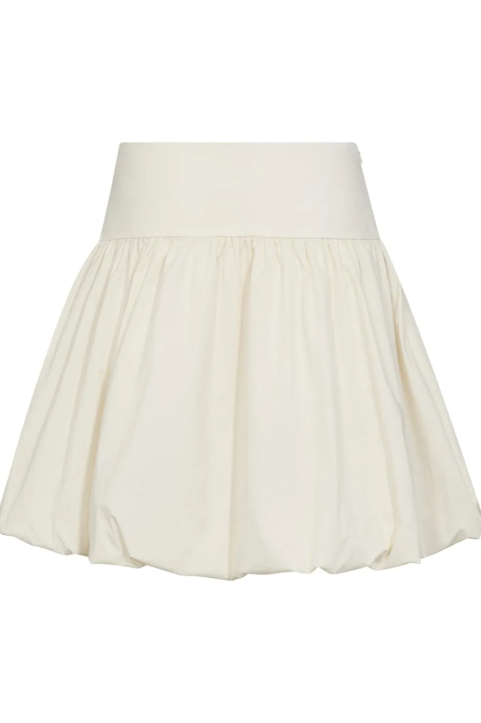 Mini nederdel fra Co´Couture i bonefarve med ballonform. Den har elastisk talje og er lavet af en blanding af bomuld og polyamid.