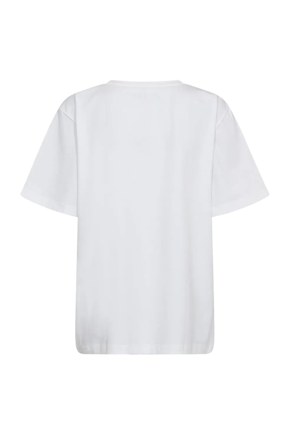 Hvid T-shirt fra Co´Couture med sort Co’couture print på forsiden. T-shirten har en løstsiddende pasform og korte ærmer med rund halsudskæring.