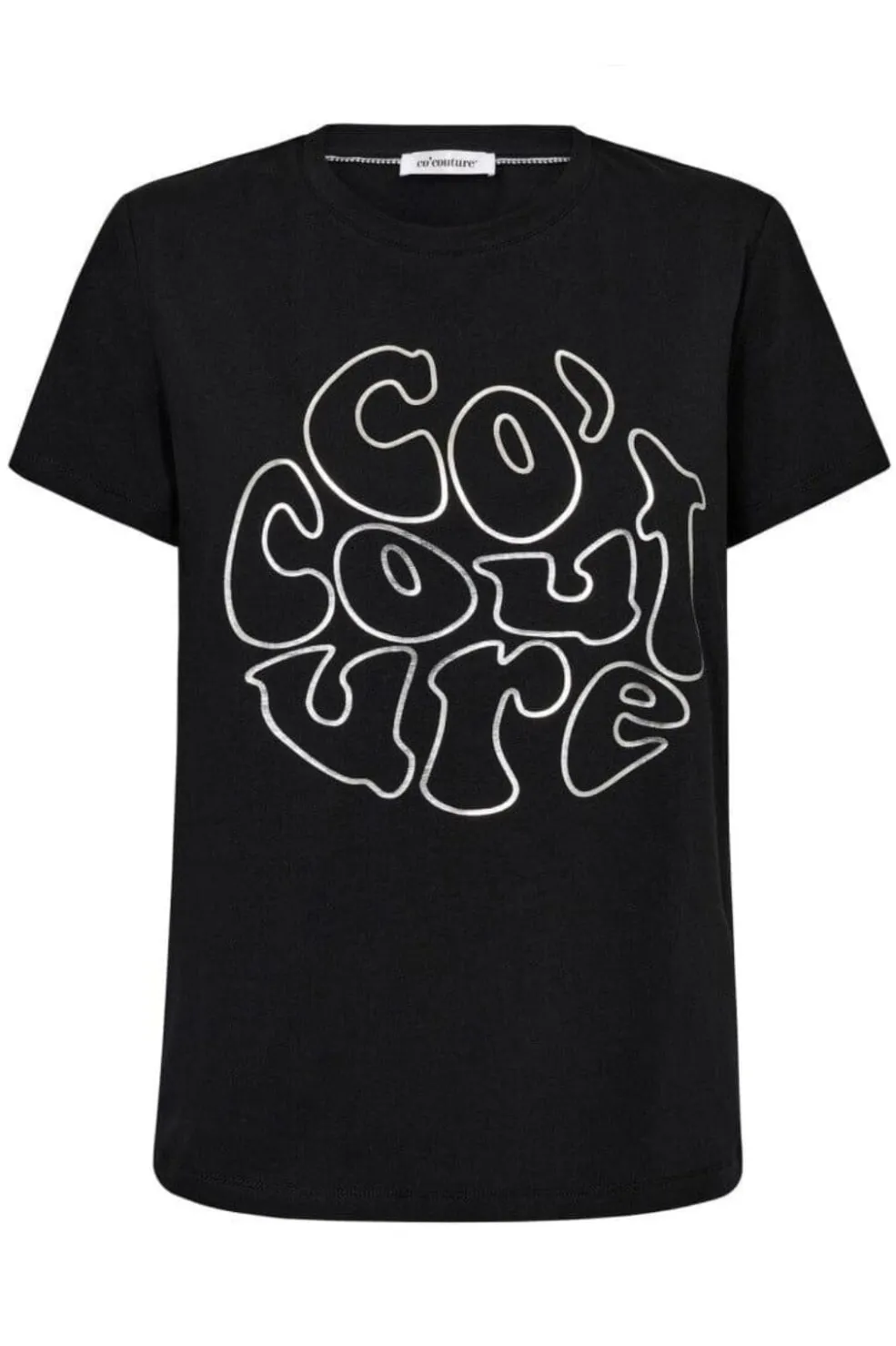 Sort T-shirt fra Co’Couture med hvidt grafisk print på forsiden. T-shirten har rund hals og korte ærmer, hvilket giver et enkelt og rent udtryk.