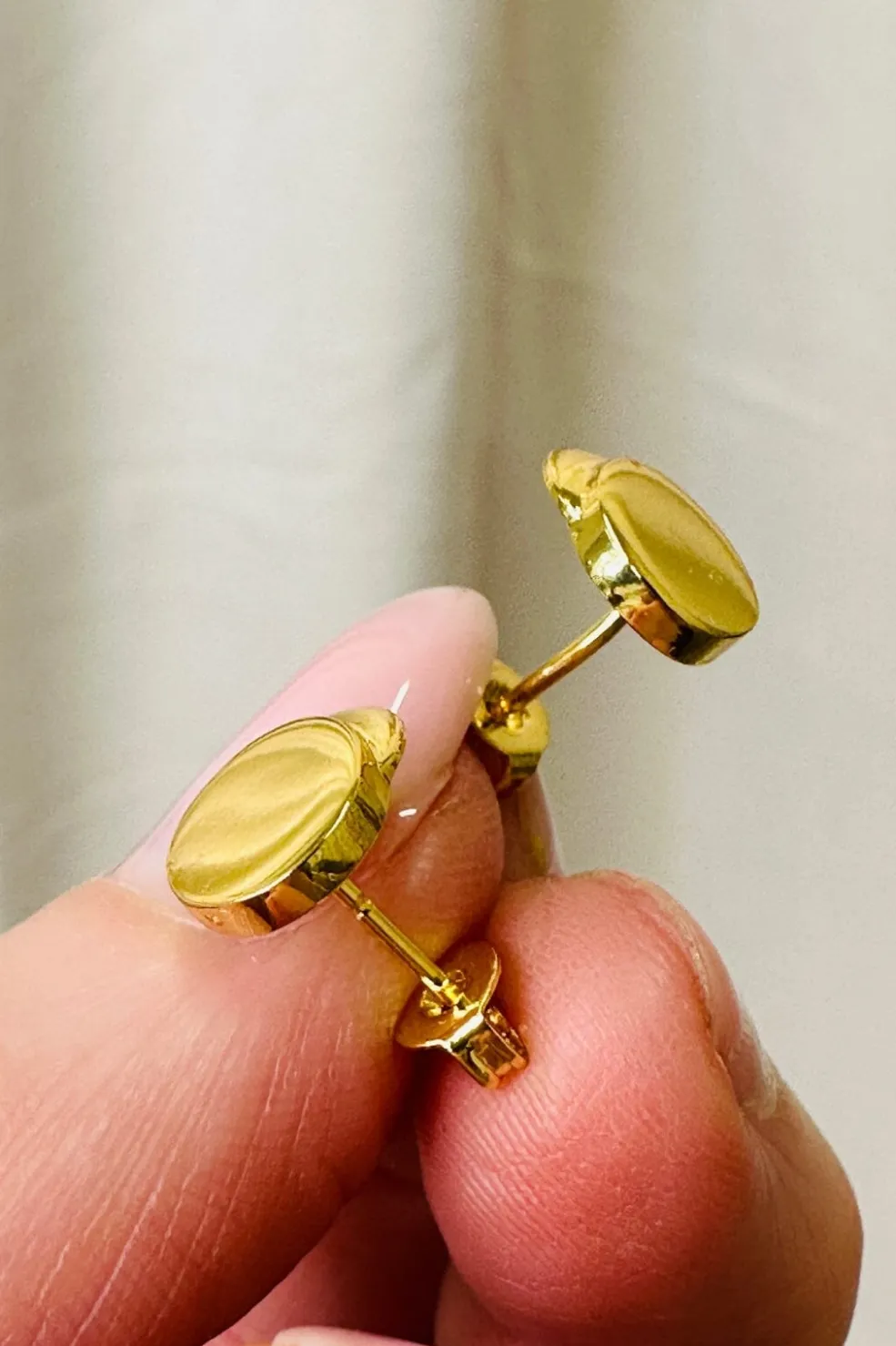 Forgyldte ørestikker fra O element med rund form og stiftbagside. De er fremstillet i messing med en skinnende guldfinish, der giver et enkelt udtryk.