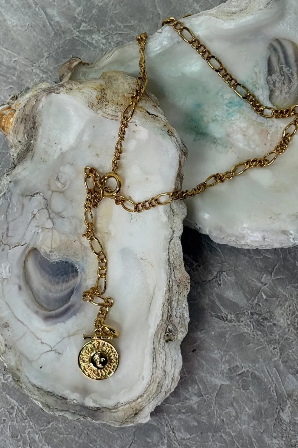 “Connection” er en figarokæde designet med fleksibilitet i fokus. Du kan bære den klassisk eller hægte låsen i et af kædens led og skabe en Y-form — en lille påmindelse om, at forbindelser kan tage mange former.
