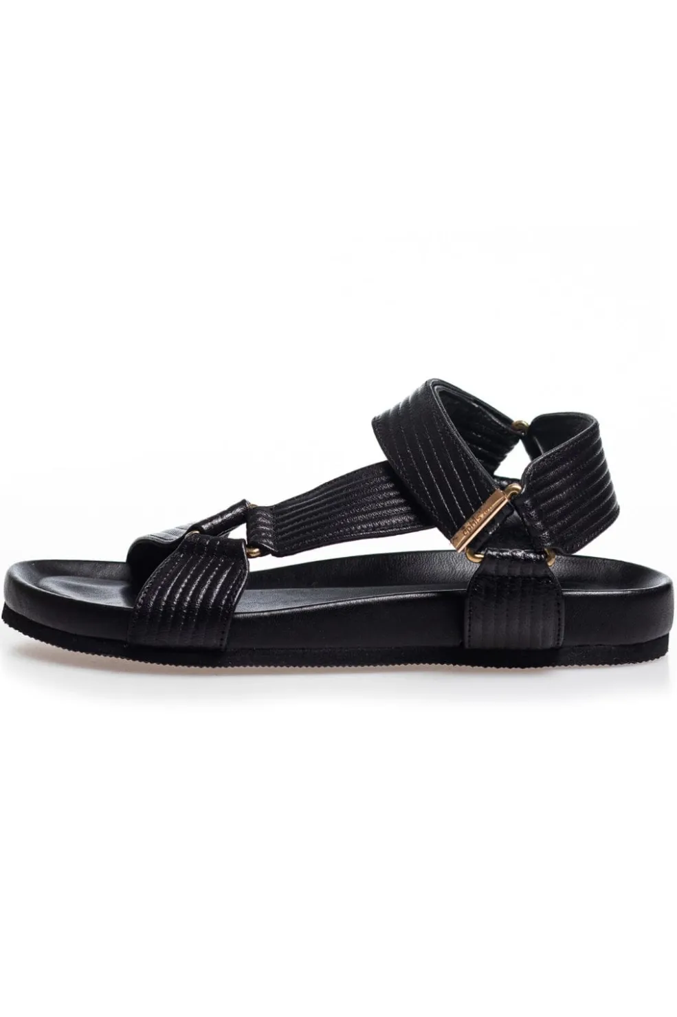 Sorte sandaler fra Copenhagen Shoes i blødt læder med ribbede stropper. Sandalen har en blød indersål og fleksible såler, der giver god støtte til foden.