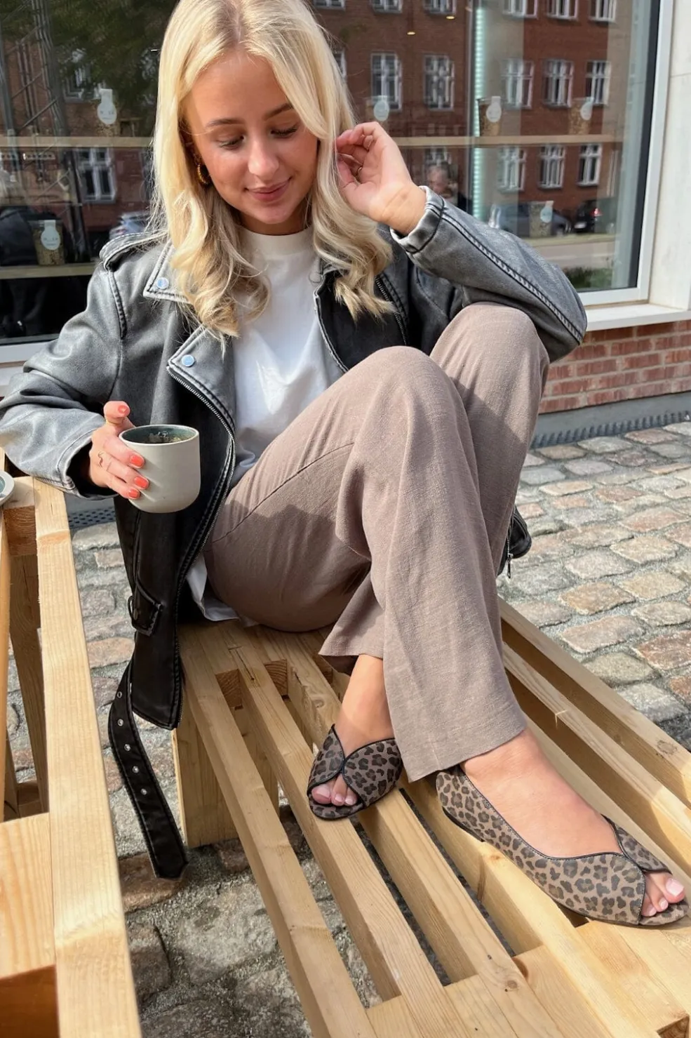Åbne sko fra Copenhagen Shoes med leopardmønster. Skoene er lavet af læder og har bløde såler med latexskum, der giver god stødabsorbering til hverdagsbrug.