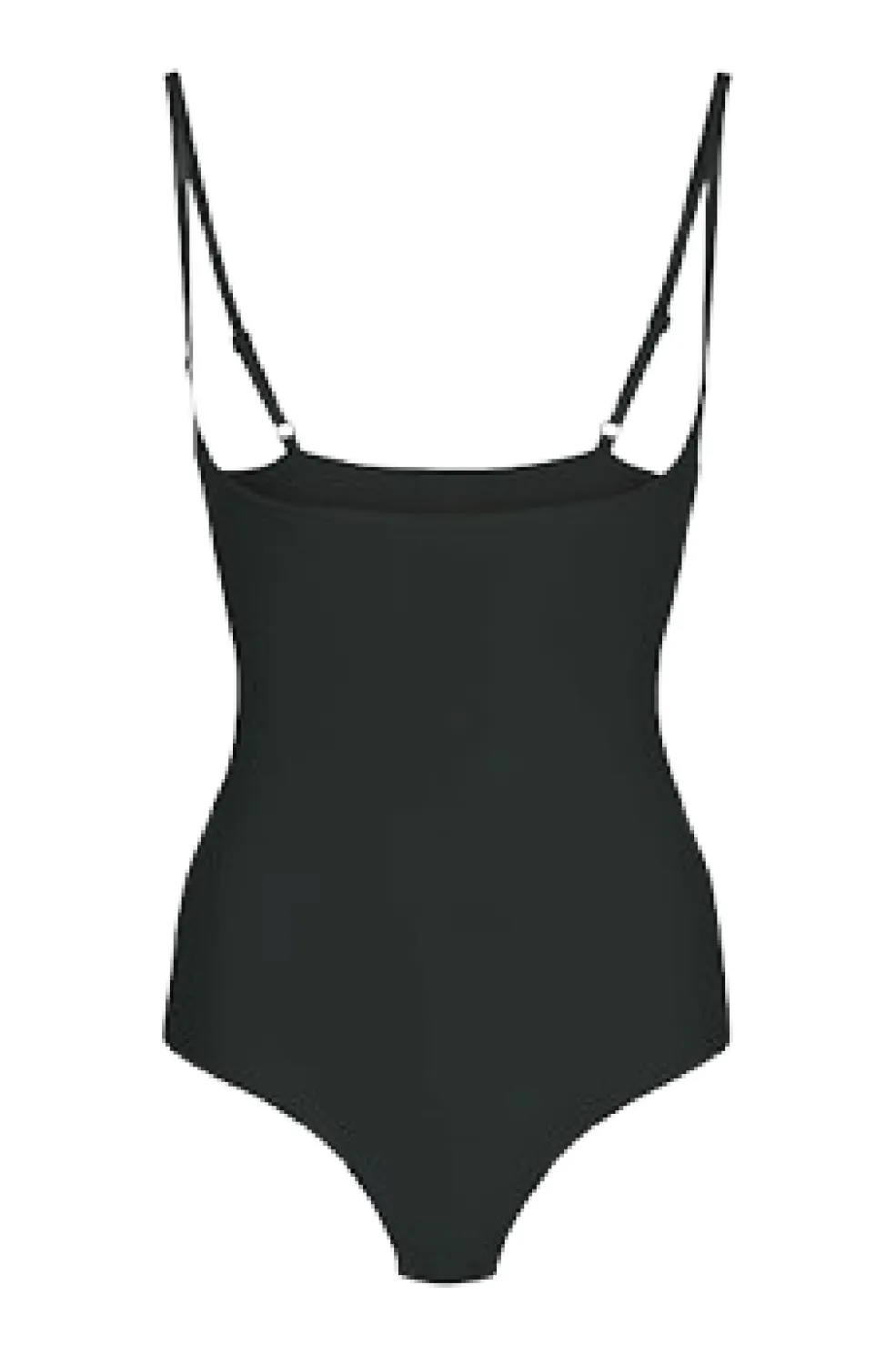 Sort bodystocking fra Decoy med skinny fit. Den slutter under barmen og har smalle stropper, der kan justeres efter behov. Designet giver god støtte til kroppen.