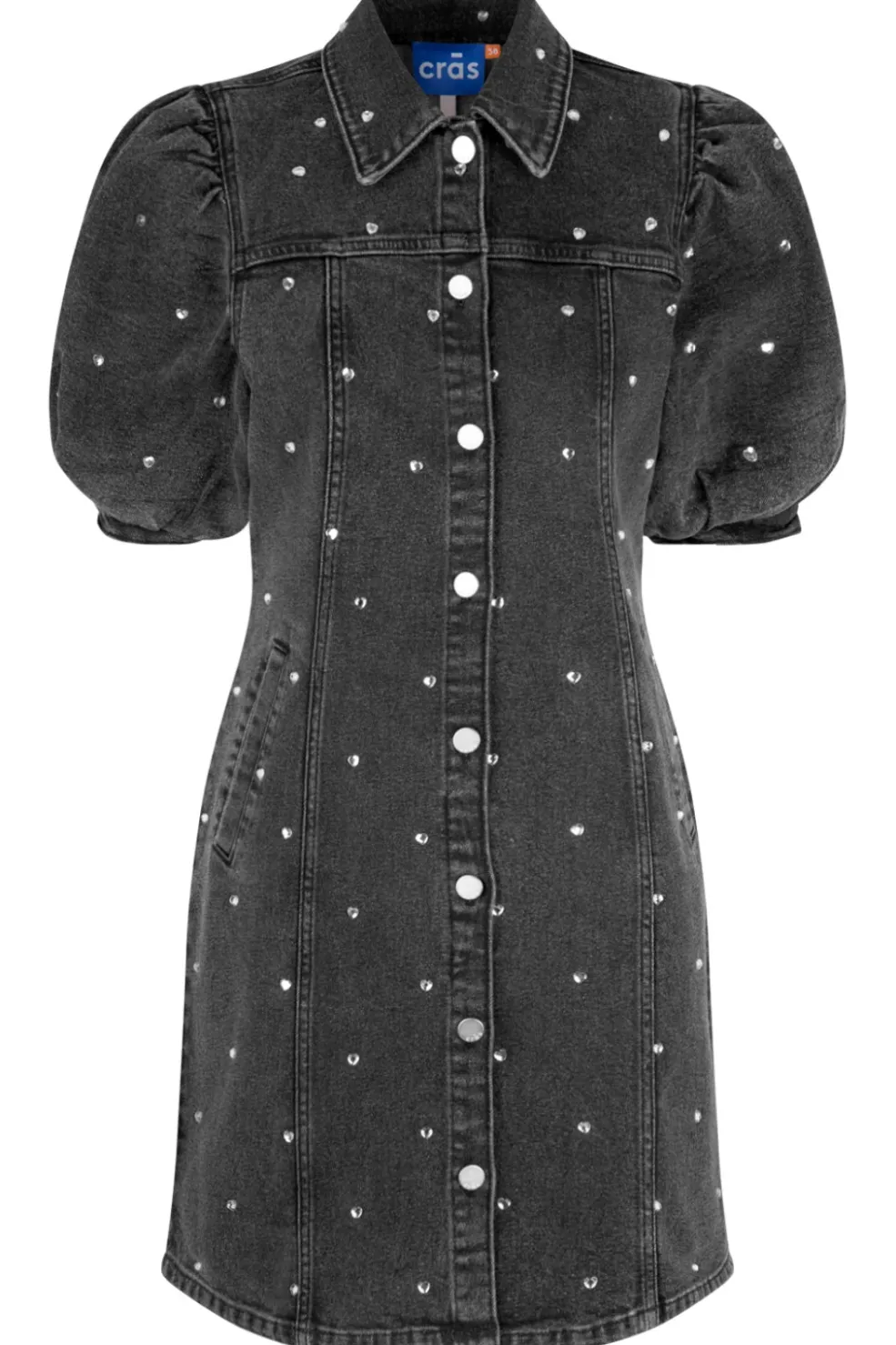 Smuk denimkjole med korte ærmer og knapper ned fortil.