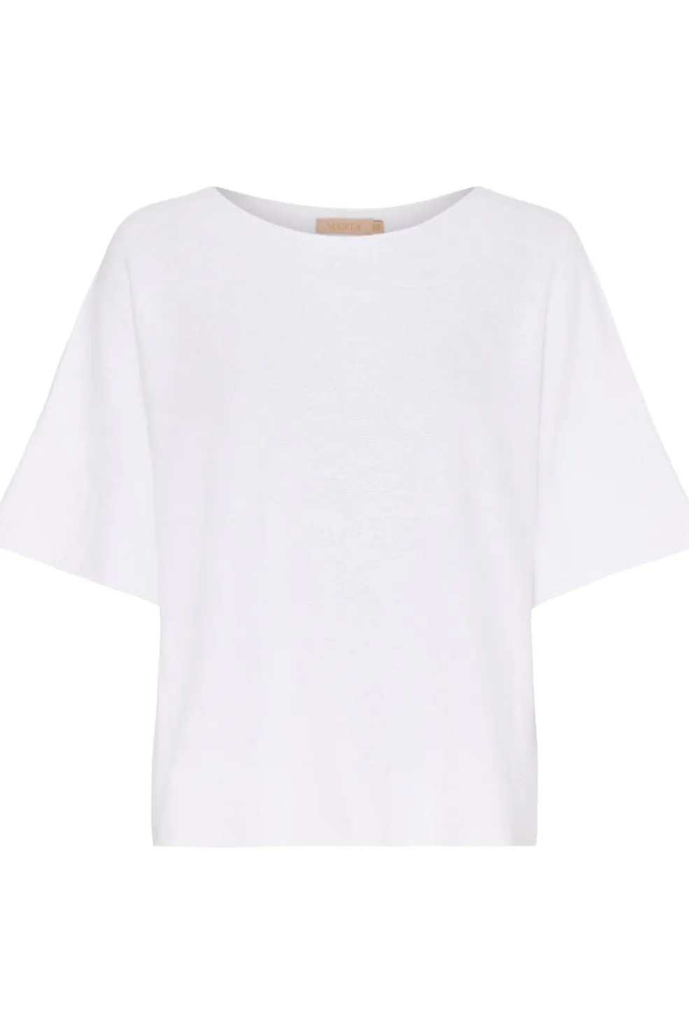 Hvid strikket top fra Marta Du Chateau med en oversized pasform. Toppen har en bred, rund halsudskæring og korte ærmer, der giver et afslappet look.