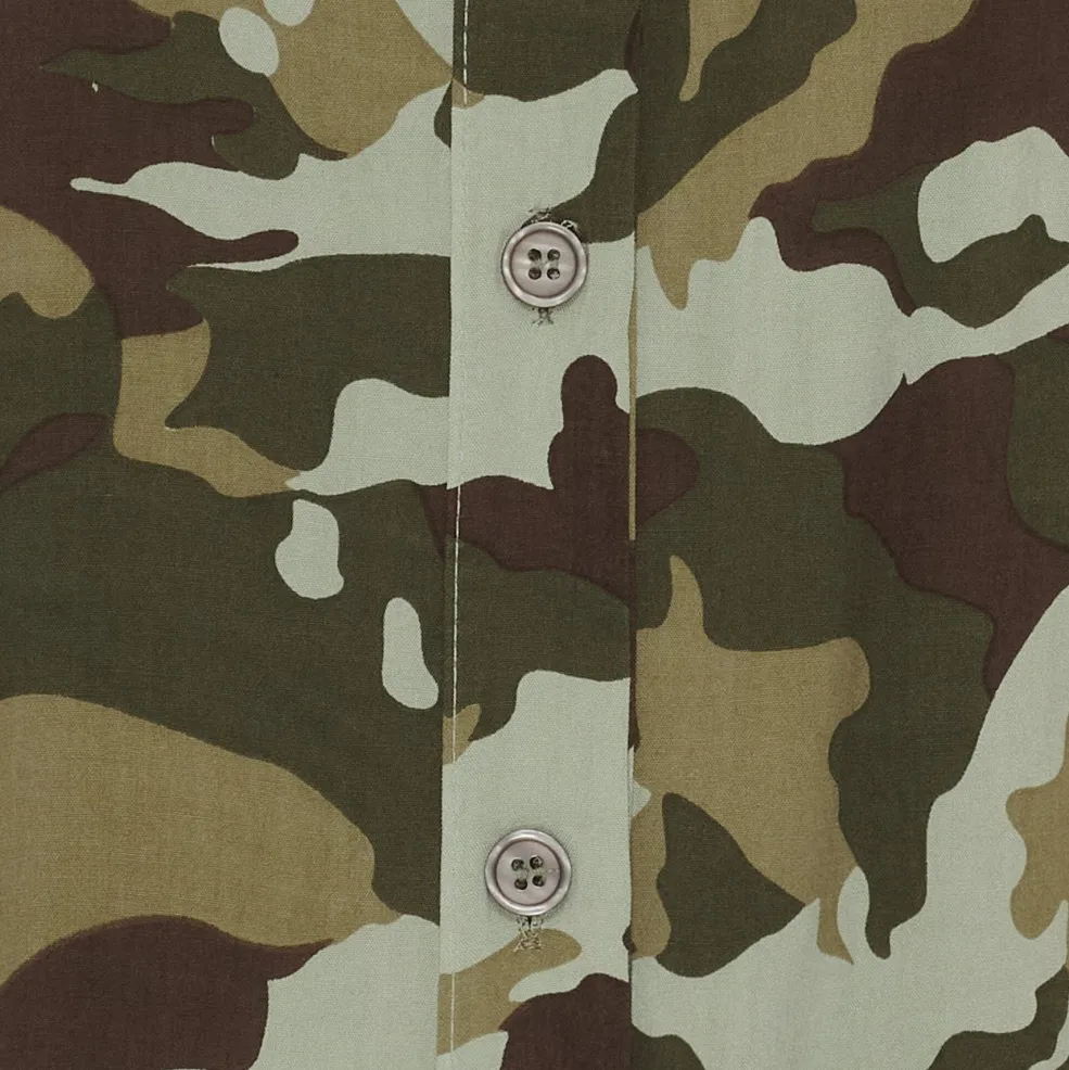 En skjorte fra Marta Du Chateau med camouflage-mønster i khaki grøn og grøn. Skjorten er lavet af 100 % viskose og har en oversized pasform.