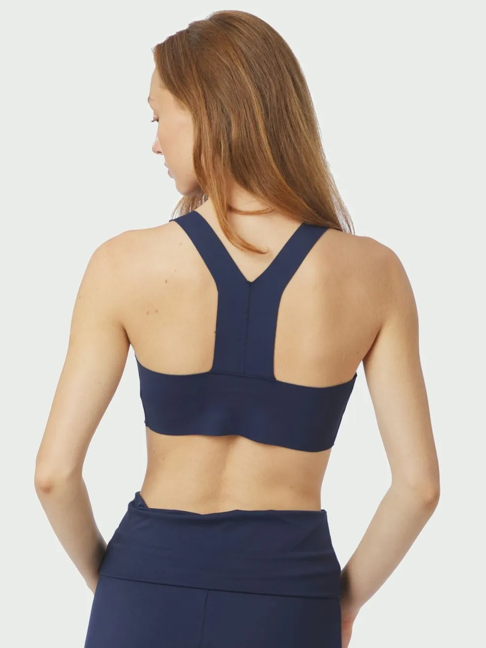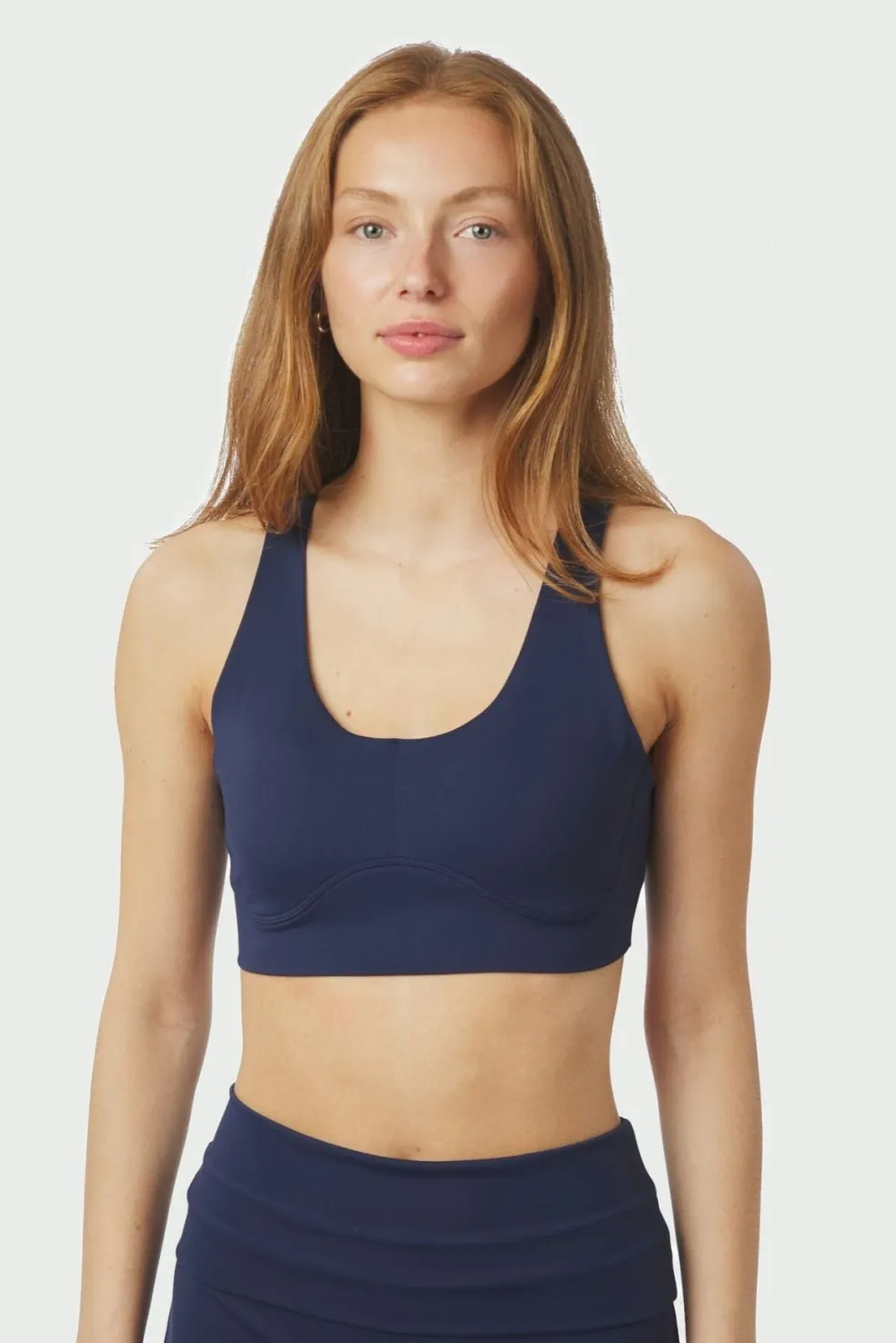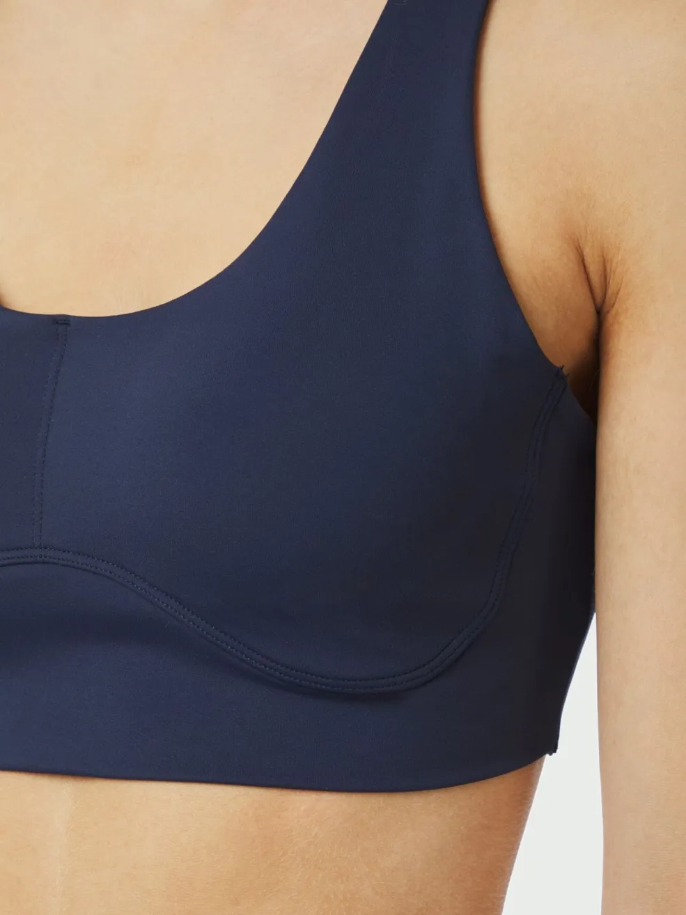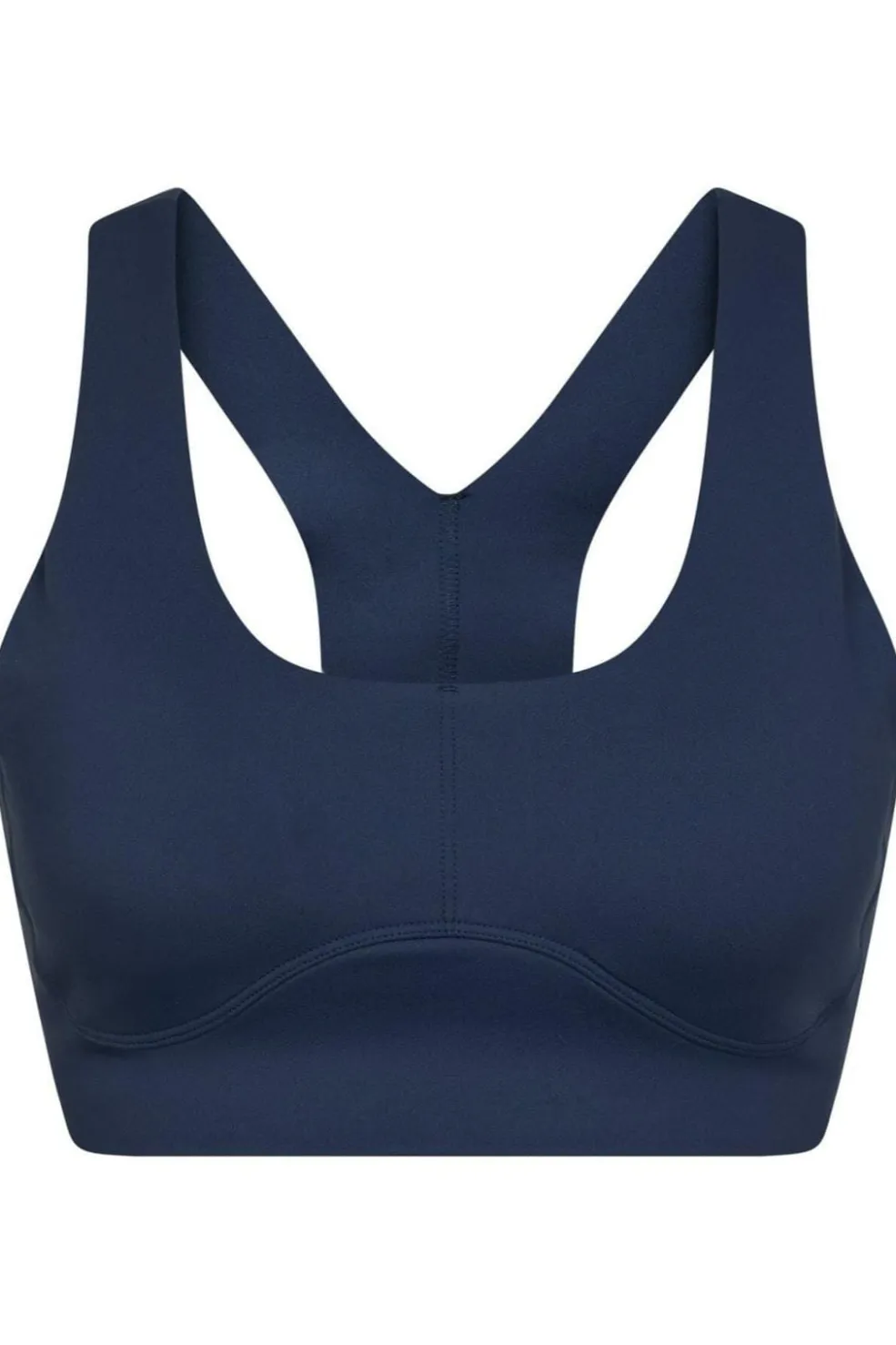 Mørkeblå sportstop fra Neo Noir med tætsiddende pasform. Toppen har et racerback-design på ryggen og brede stropper, der giver støtte under aktivitet.