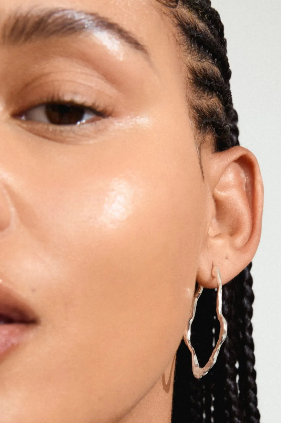 Sølvbelagte hoop-øreringe fra Pilgrim med en bølget form. De lette øreringe har en organisk, uregelmæssig silhuet og en blank overflade.