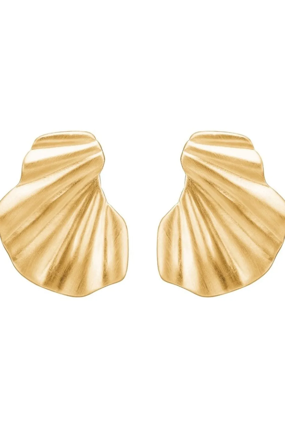 Guldbelagte øreringe fra Enamel Copenhagen med et bølget design. Smykket har en riflet overflade og er udført i mat finish med emaljedetaljer.