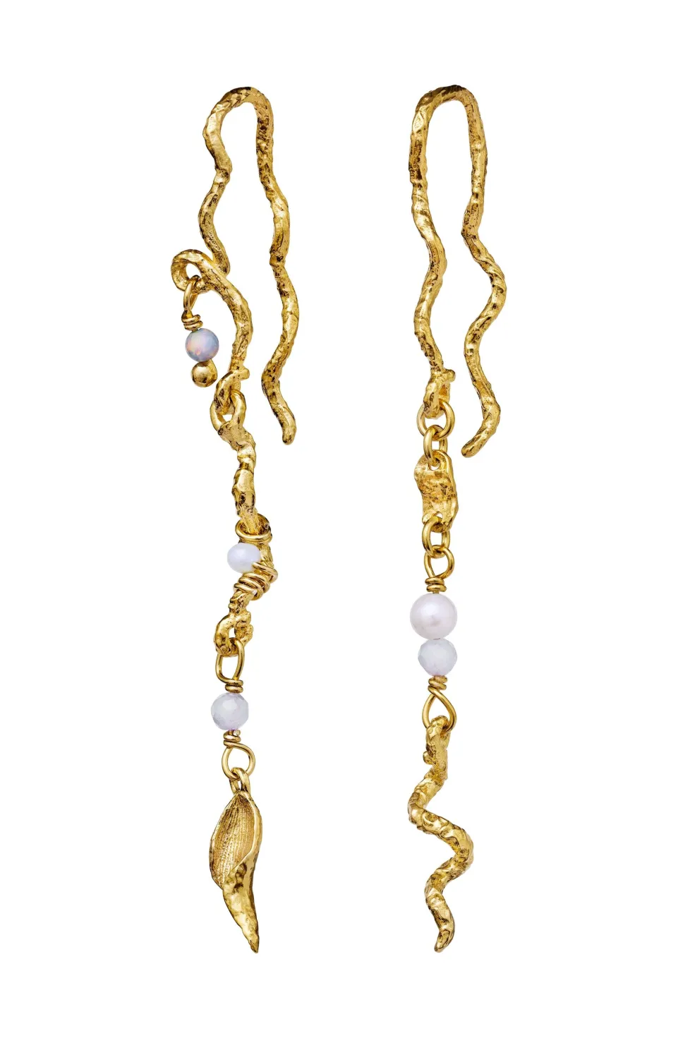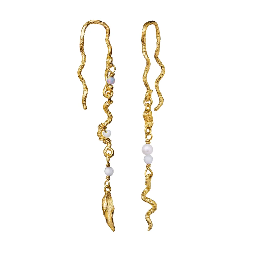 Øreringe fra Maanesten med bølget form og organisk design. De er lavet af genanvendt sterlingsølv med en 18 karat guldbelægning og har en ru overflade med tekstur.