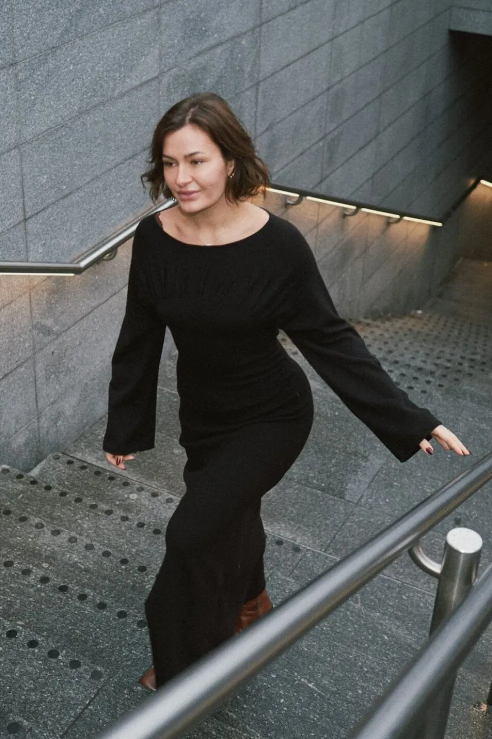 - Modellen er 176 cm høj og bærer størrelse 36
