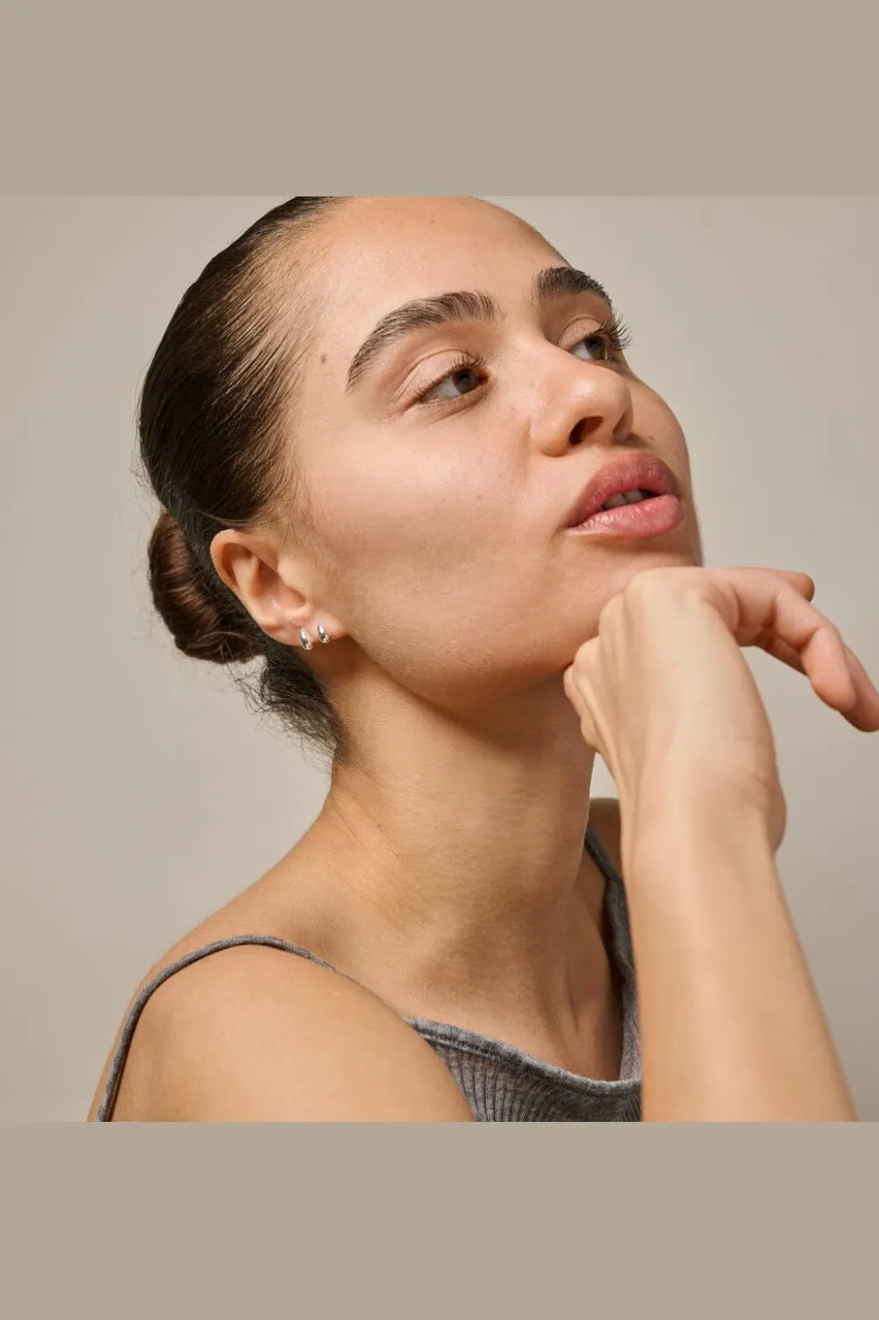 Sølvfarvede ørestikker fra Enamel Copenhagen med en dråbeformet, organisk form. Ørestikkerne er lavet af genanvendt sterling sølv og har en blank overflade.