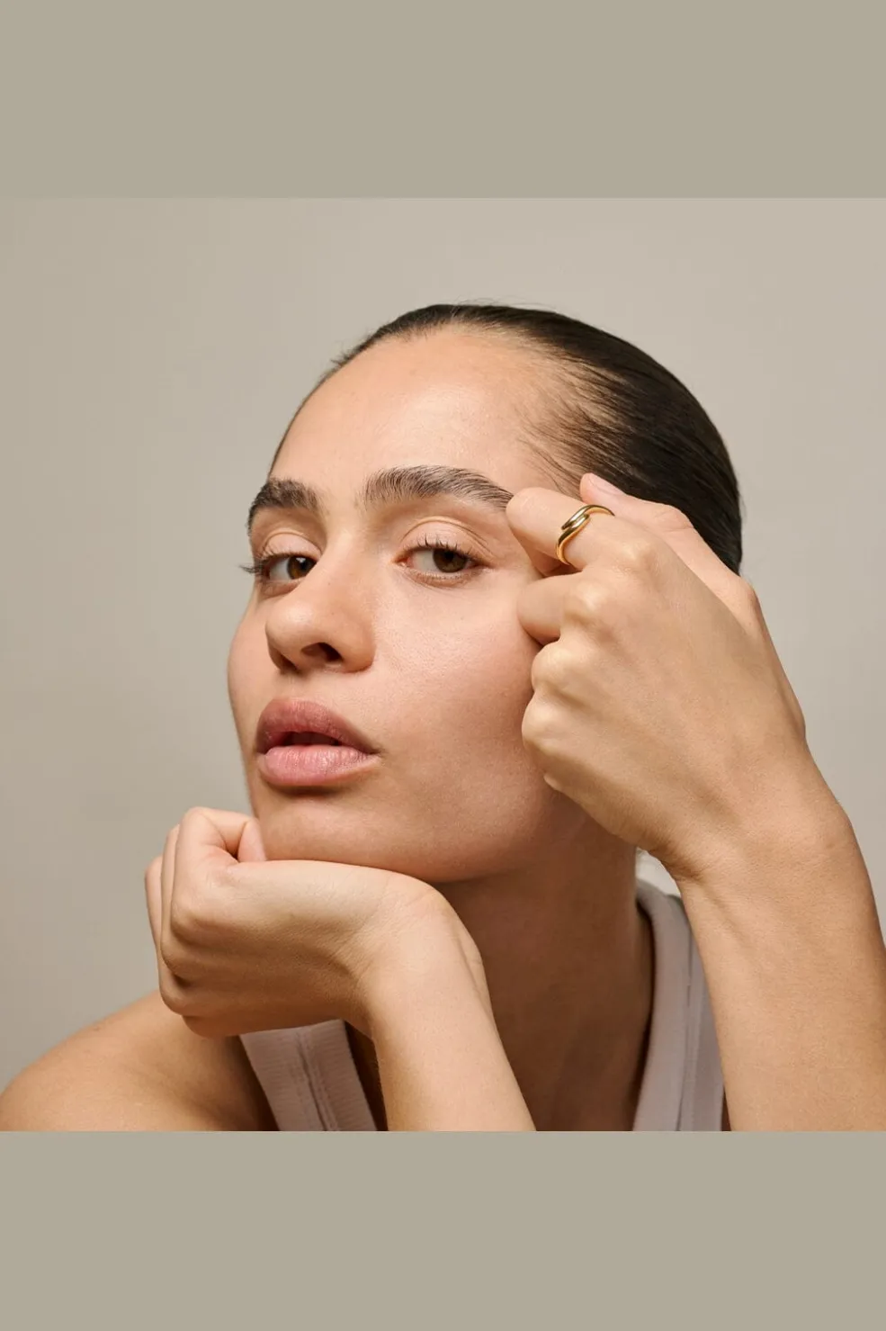 Guldring fra Enamel Copenhagen med et bølget design. Ringen er fremstillet af 18 karat guldbelagt genanvendt sterlingsølv med en blank, poleret overflade.