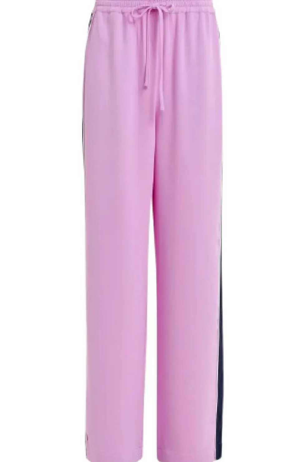 Bukser fra Essentiel Antwerp i en lavendel-pink nuance. De har en løs pasform med sidepaneler i kontrastfarve og lang længde, der passer til forskellige typer fodtøj.