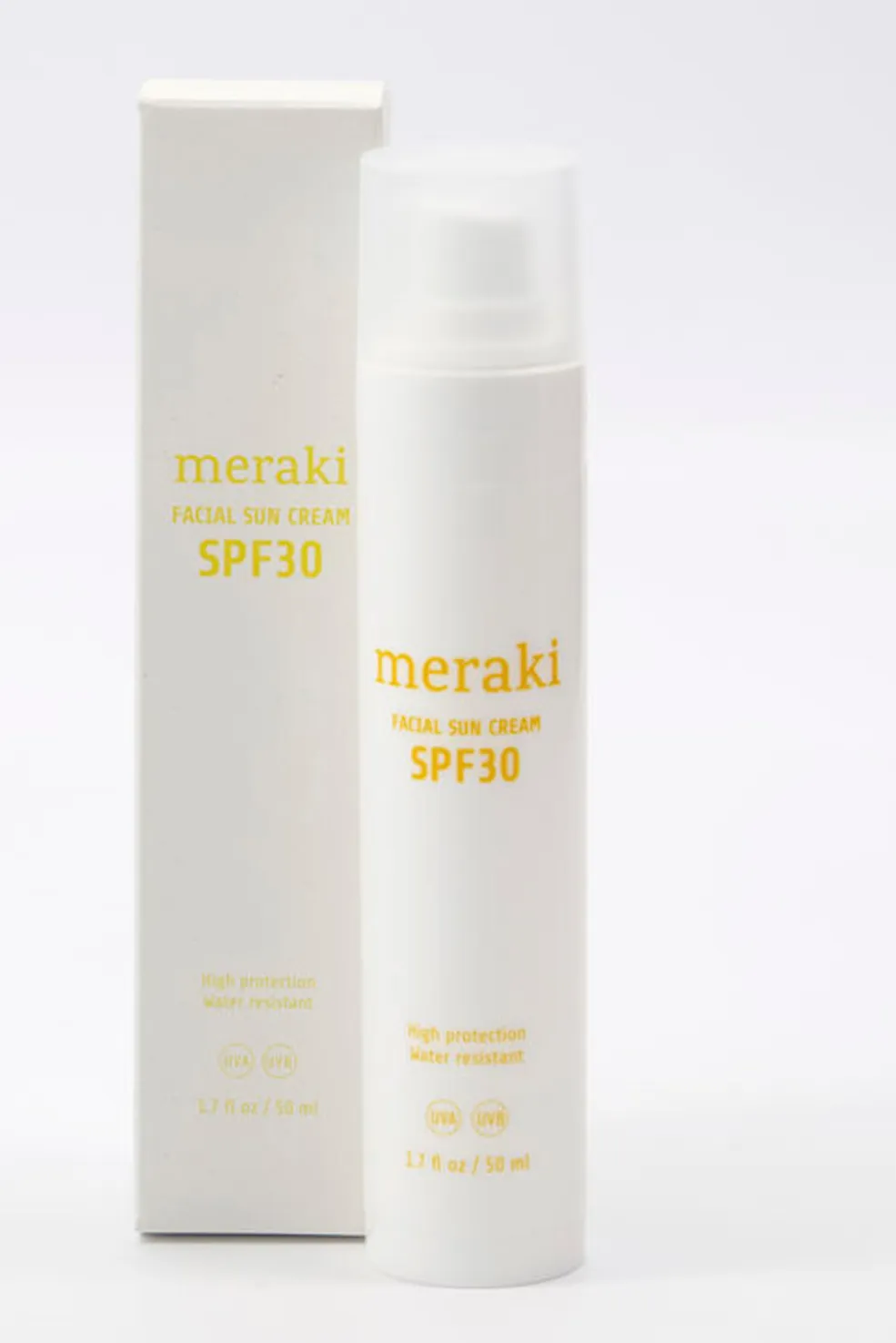 En solcreme til ansigtet med faktor 30. Cremen beskytter mod både UVA- og UVB-stråler og indeholder E-vitamin samt aloe vera til ekstra pleje.